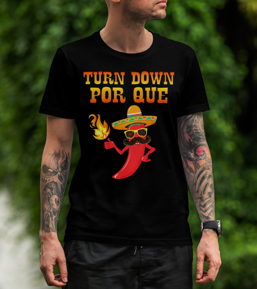 TURN DOWN POR QUE Sombrero Chili Pepper Flame Mexican T-Shirt