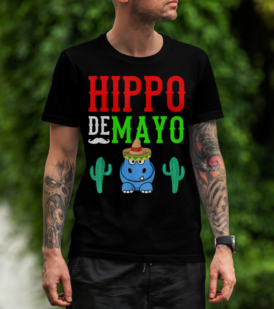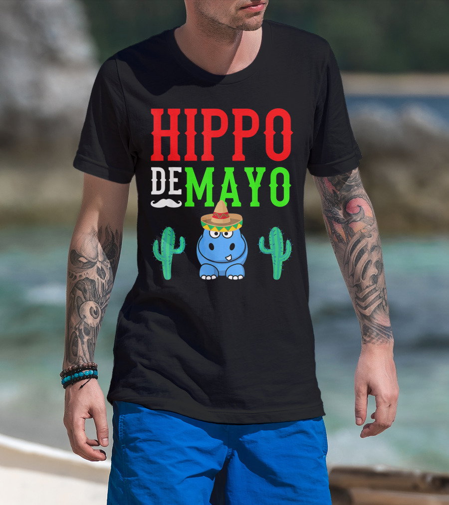 Hippo De Mayo Funny Mexico Fiesta With Sombrero Cactus T-Shirt