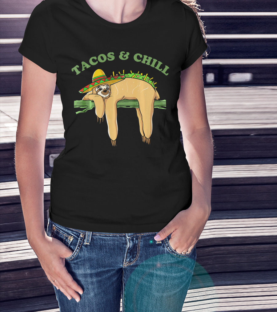 Tacos And Chill Sombrero Wearing Sloth Taco Costume Cinco De Mayo T-Shirt