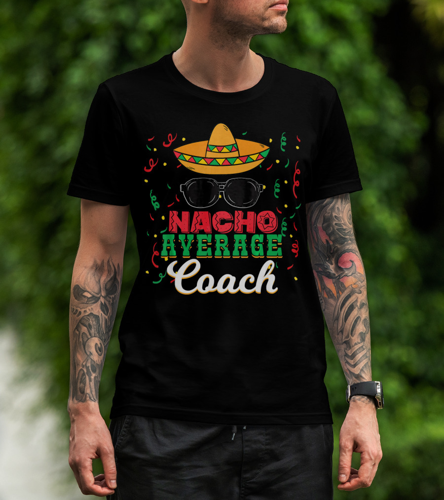 Nacho Average Coach Cinco De Mayo Sombrero Sunglasses Confetti T-Shirt