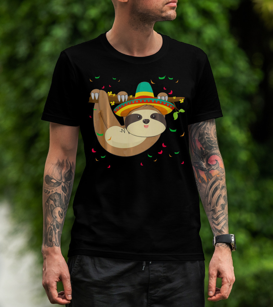 Cute Lazy Sloth With Sombrero For Cinco De Mayo 5th Of May T-Shirt