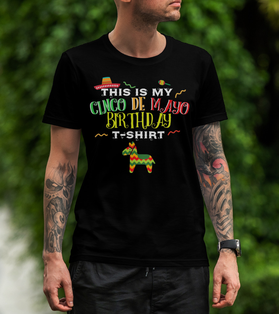 This Is My Cinco De Mayo Birthday T-Shirt May 5th Piñata And Sombrero Festive T-Shirt