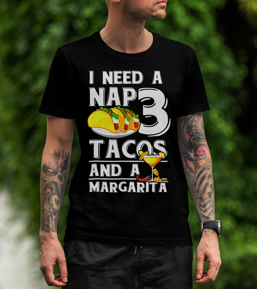 I Need A Nap 3 Tacos And A Margarita With Iconic Drink And Food T-Shirt