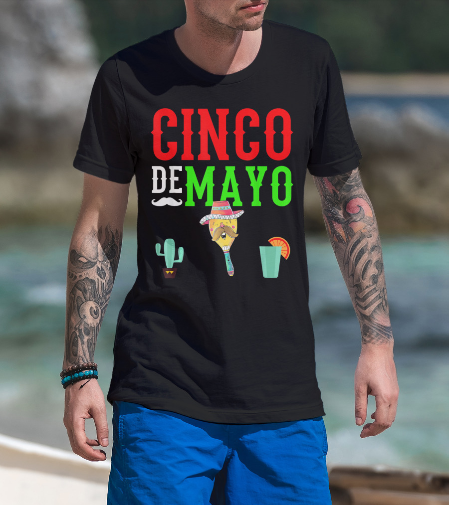 Cinco De Mayo Funny Maraca Man With Cactus And Drink T-Shirt
