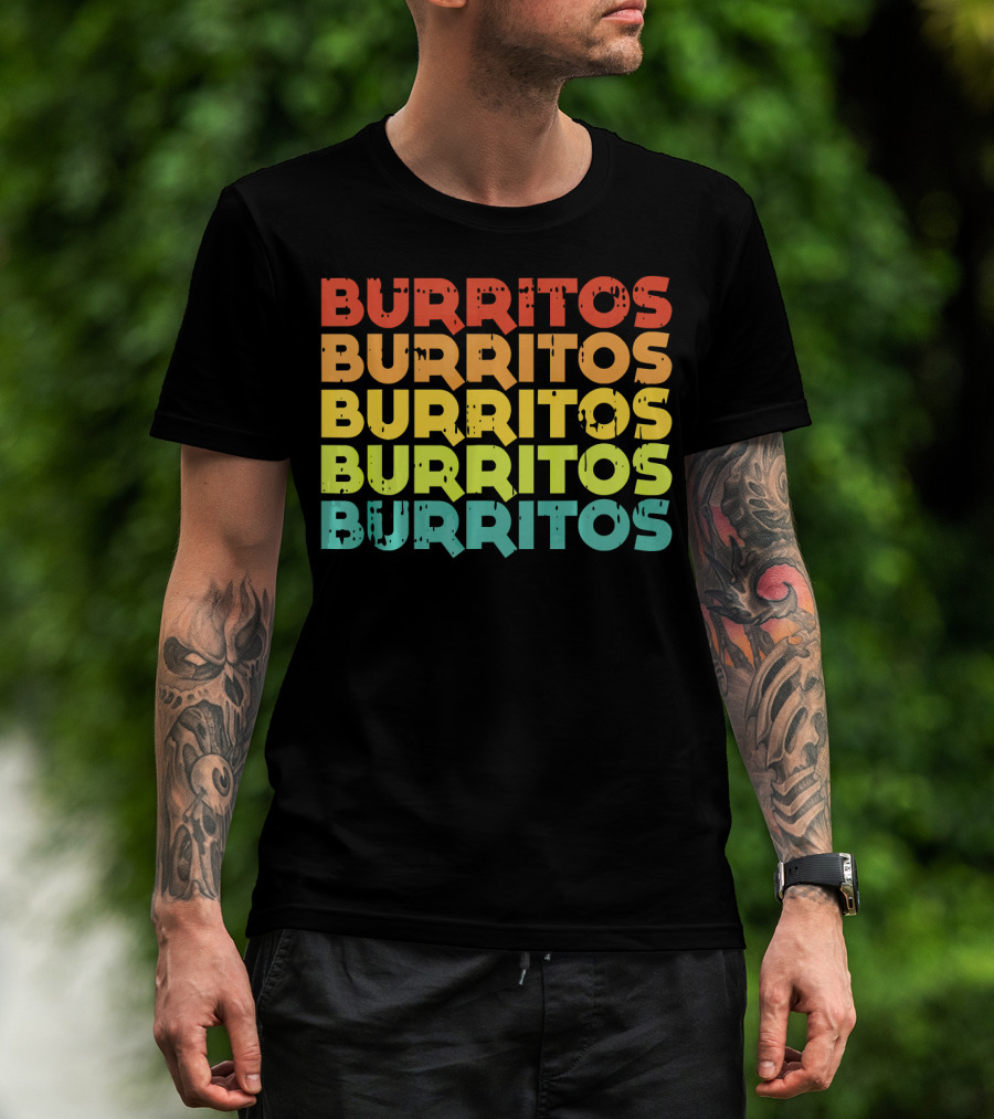 The Cinco De Mayo Burritos Retro Vintage Mex T-shirt is designed for everyday wear and a consistent fit. Fabric is pre-shrunk ring-spun cotton with durable stitching. See the size chart below for exact measurements.