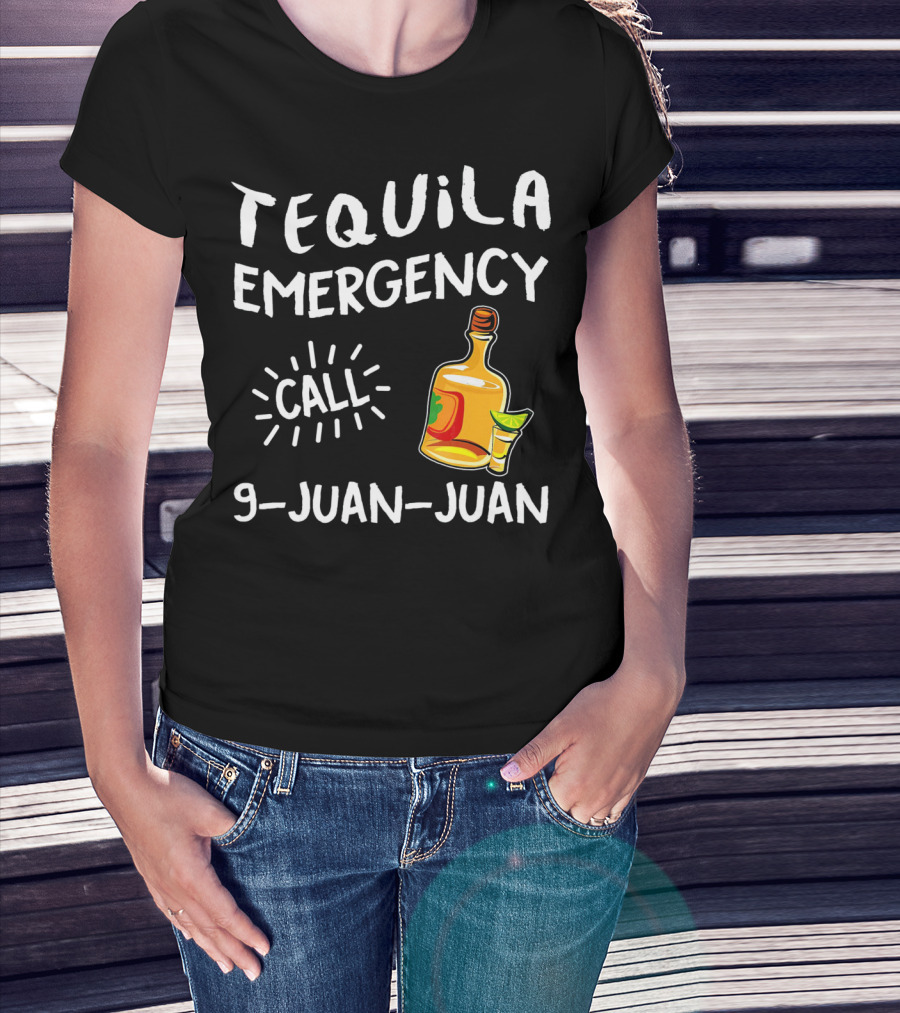 Tequila Emergency Call 9 Juan Juan With Bottle And Lime T-Shirt