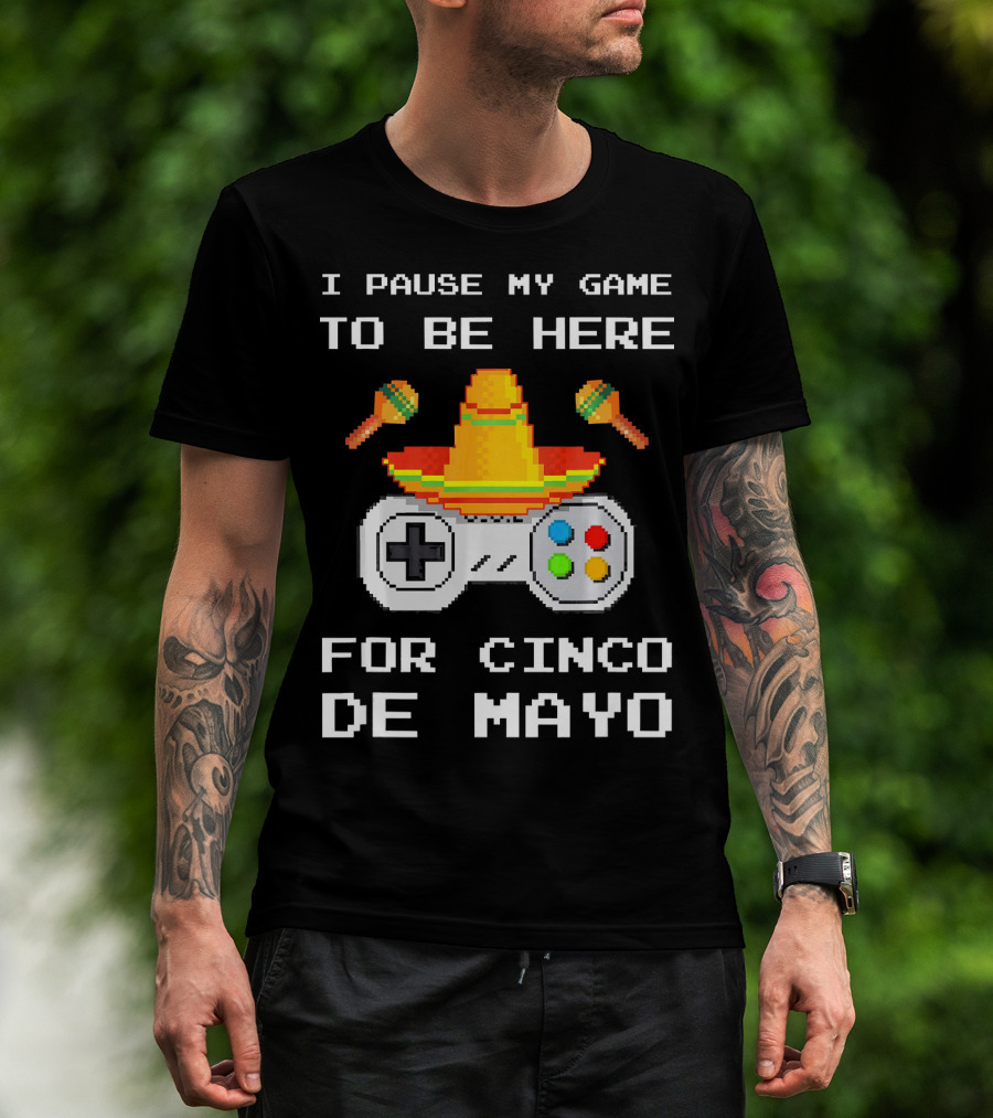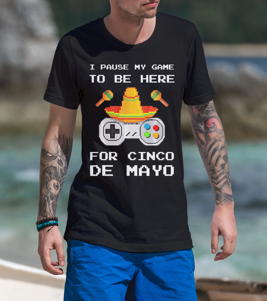 I Pause My Game To Be Here For Cinco De Mayo With Sombrero And Maracas Controller T-Shirt