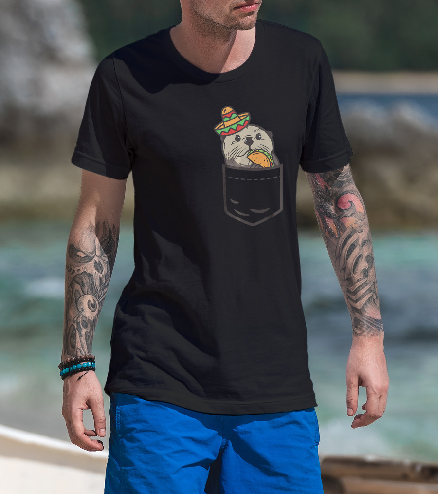 Cute Pocket Otter Sombrero Taco Cinco De Mayo T-Shirt