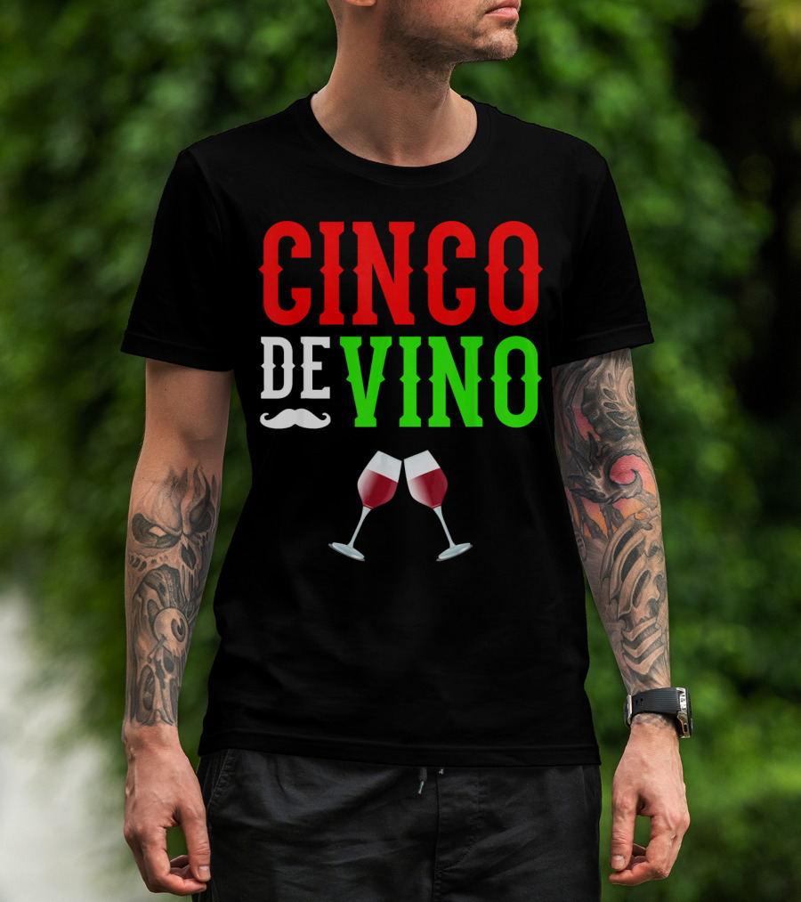 Cinco De Vino Funny Mexico Wine Glasses T-Shirt