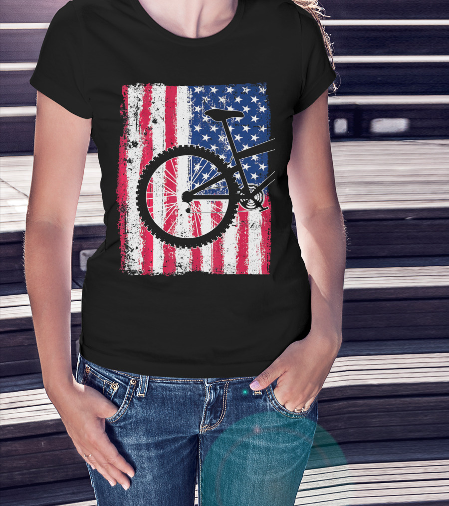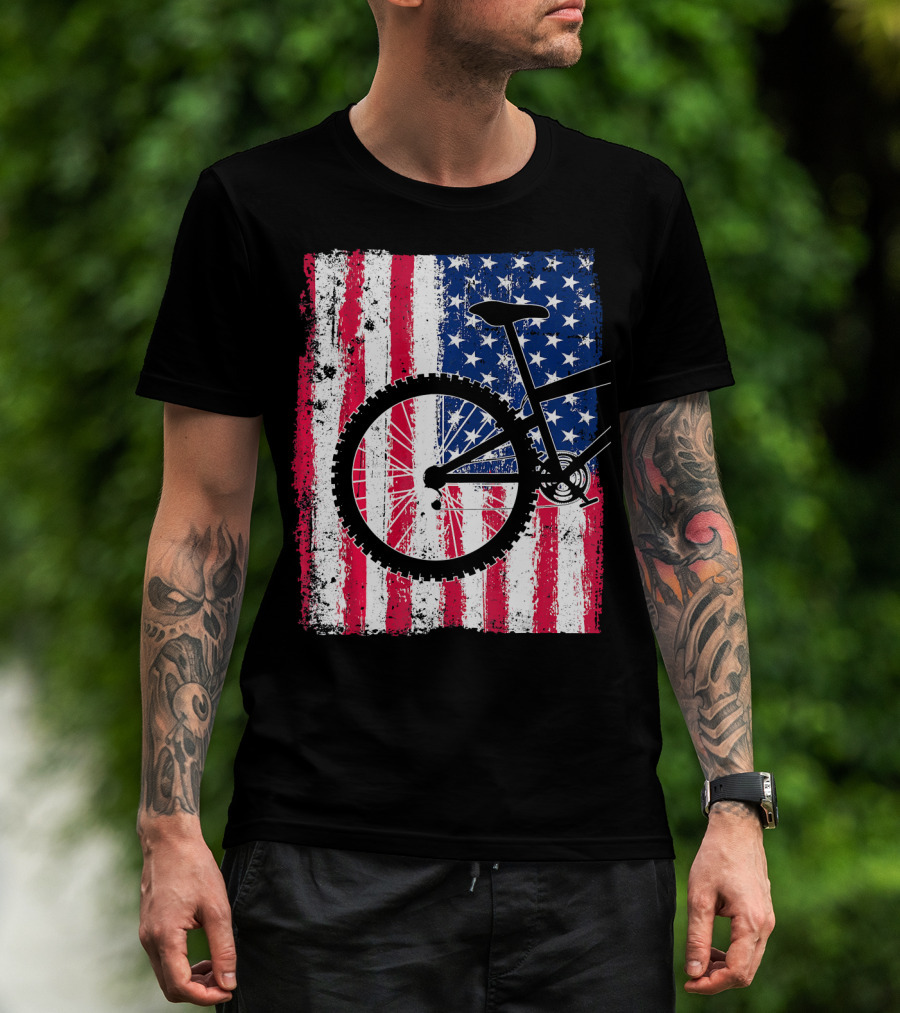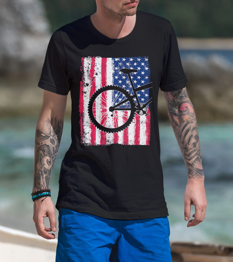 Mountain Bike Cycling American Flag Bicycle USA T-Shirt