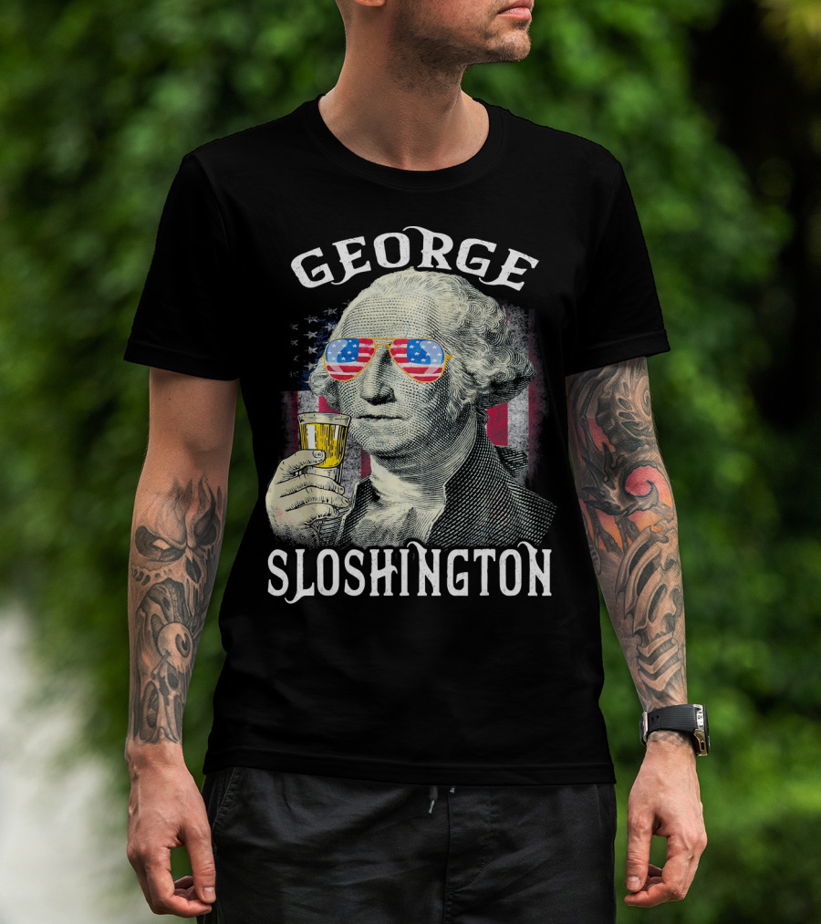 George Sloshington American Flag Sunglasses Beer T-Shirt