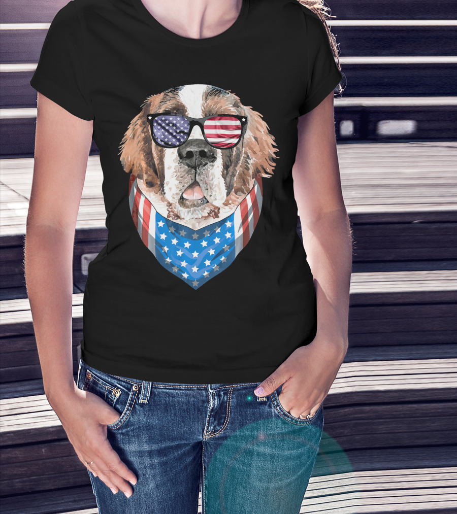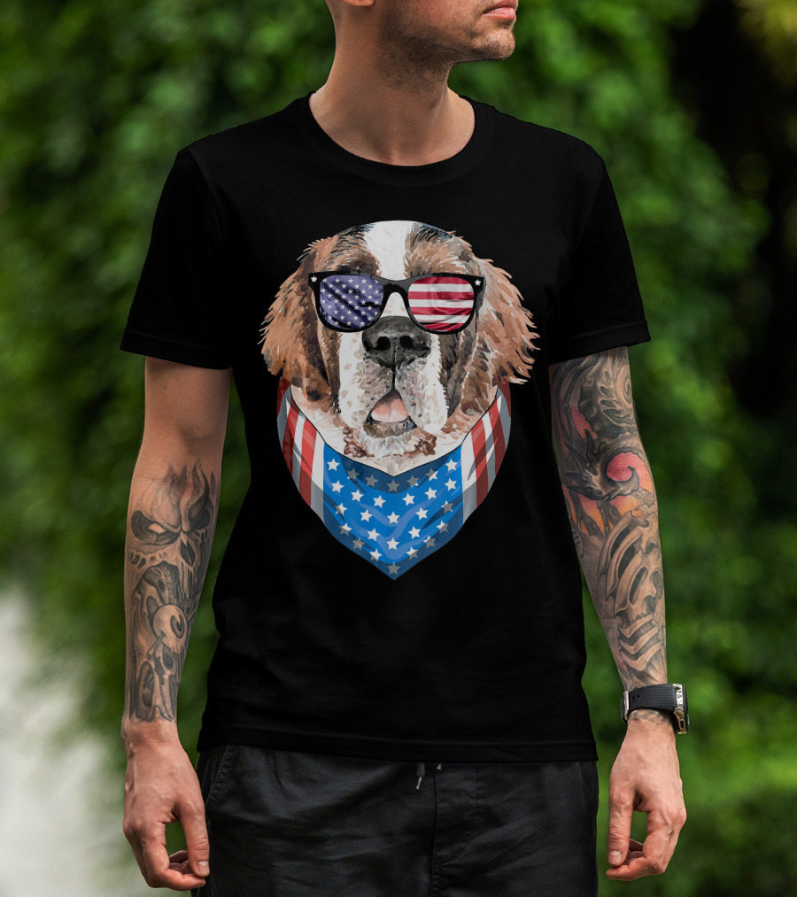 Fourth Of July American Flag Dog Sunglasses Bandana T-Shirt