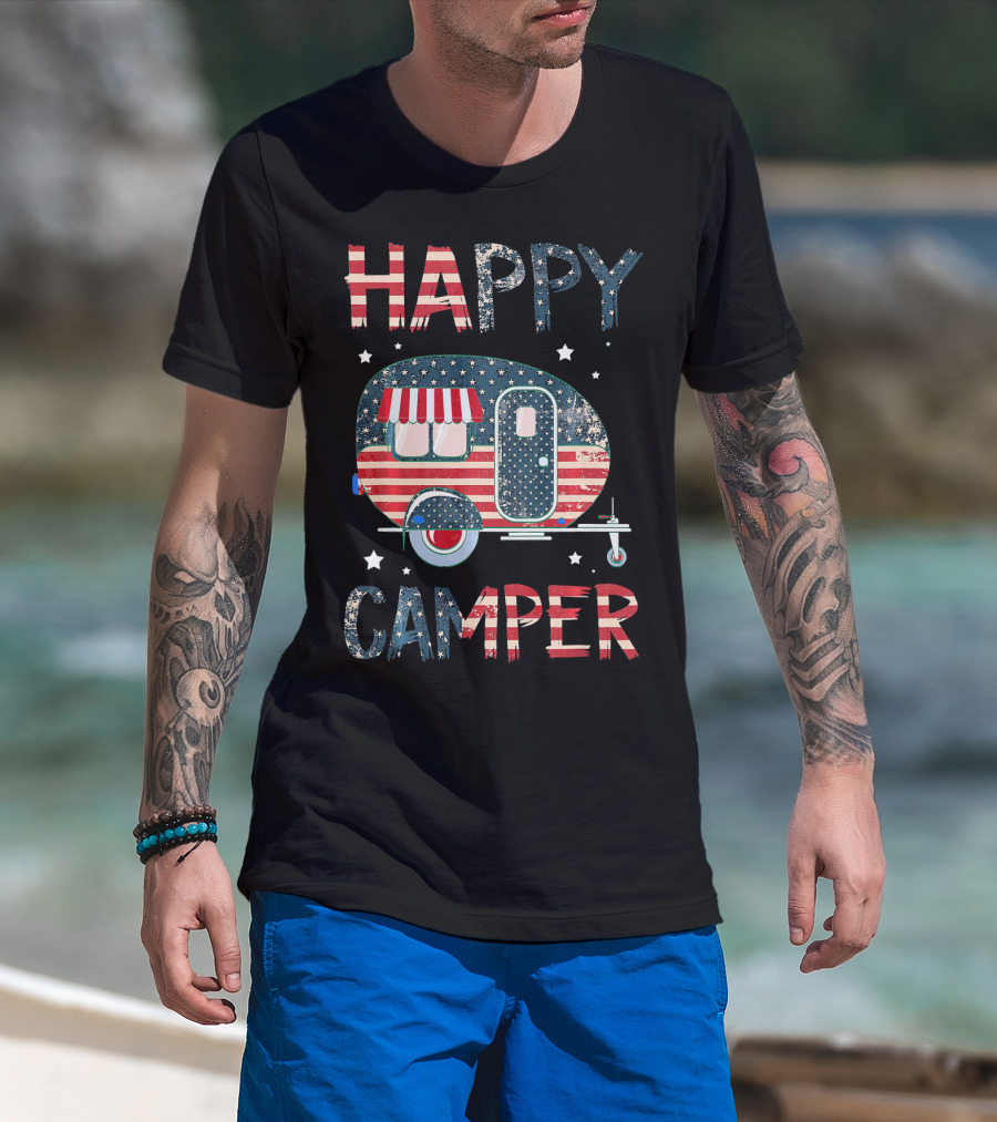 Happy Camper Stars And Stripes American Flag Patriotic T-Shirt