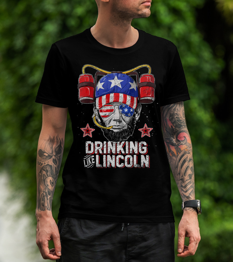 Drinking Like Lincoln Abraham Me American Patriotic Beer Helmet Stars Stripes T-Shirt