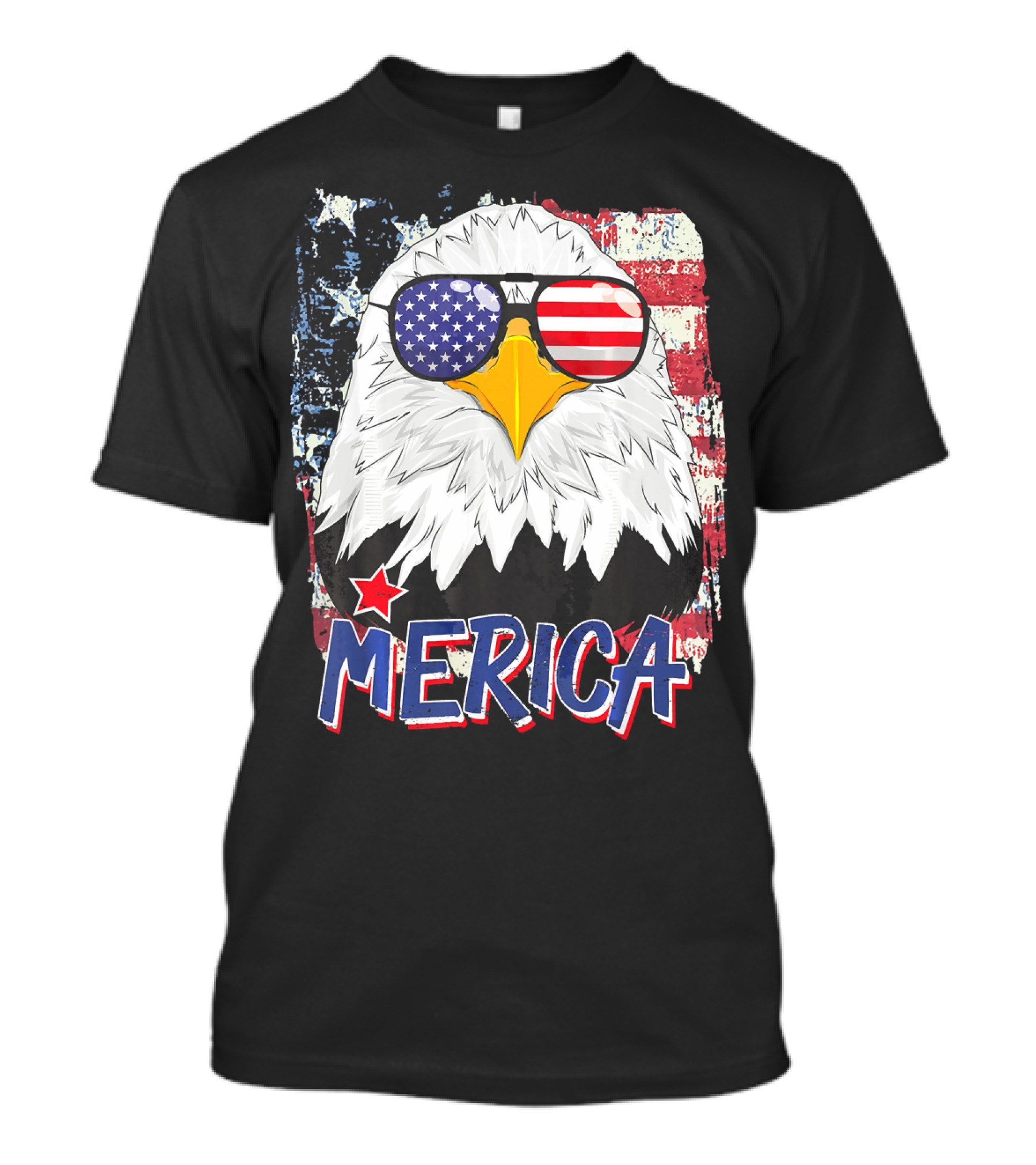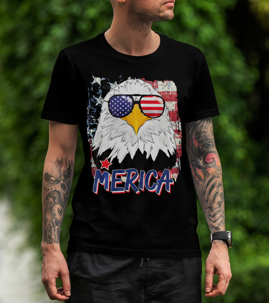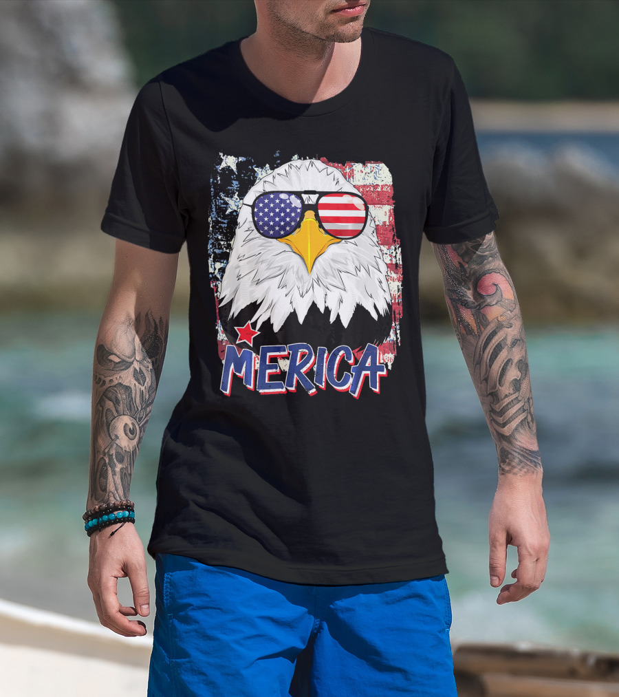 Bald Eagle With American Flag Sunglasses Merica T-Shirt