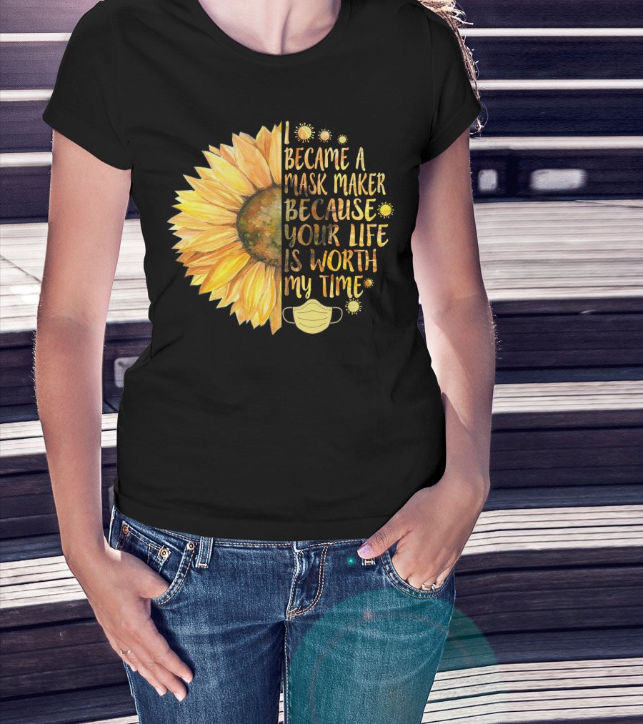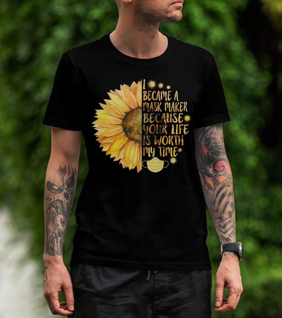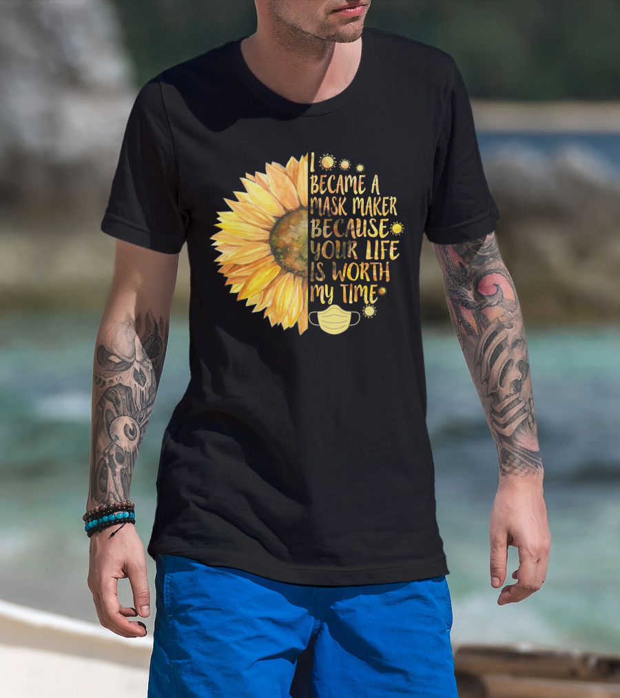 I Became A Mask Maker Because Your Life Is Worth My Time Sunflower Mask T-Shirt