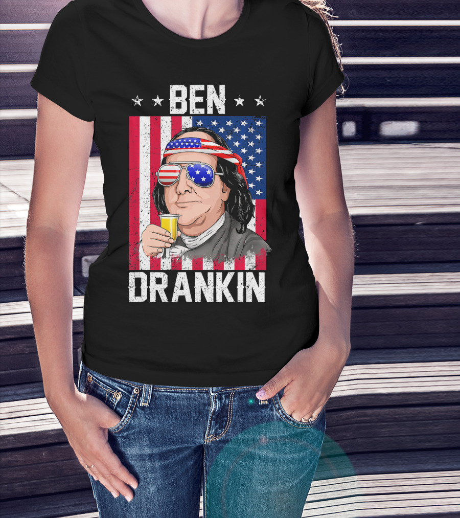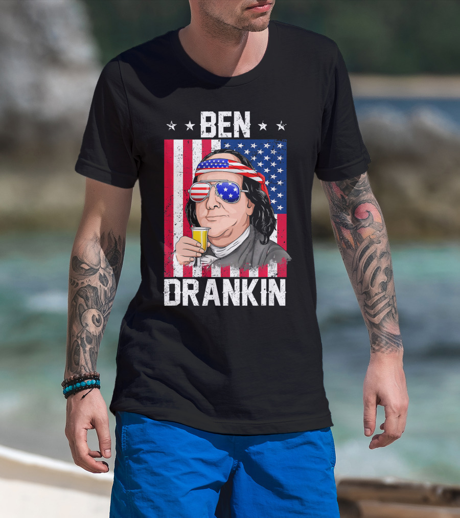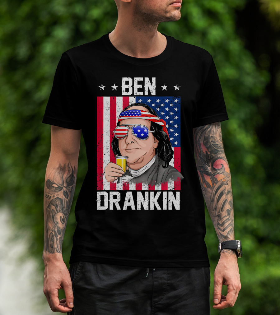 Ben Drankin American Flag Shades And Stars With Beer T-Shirt