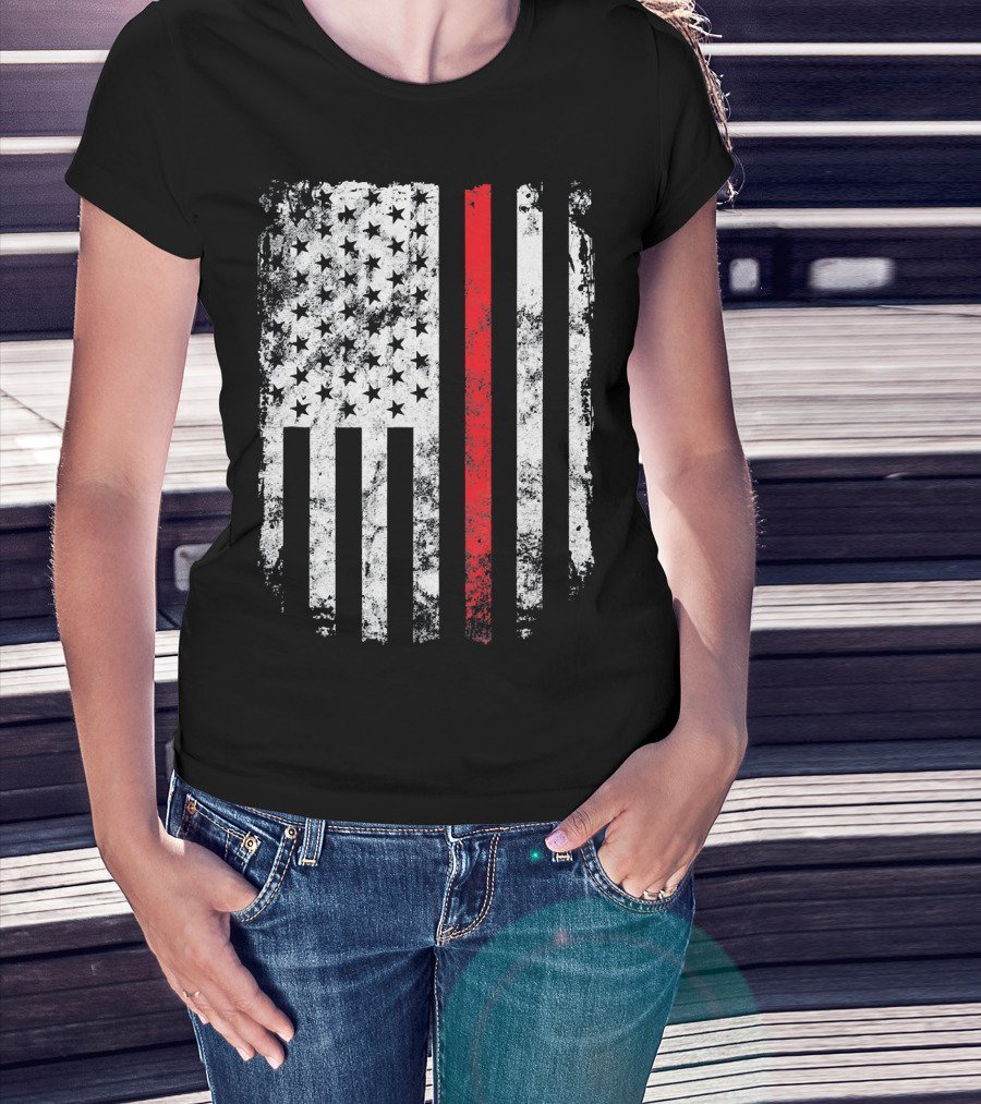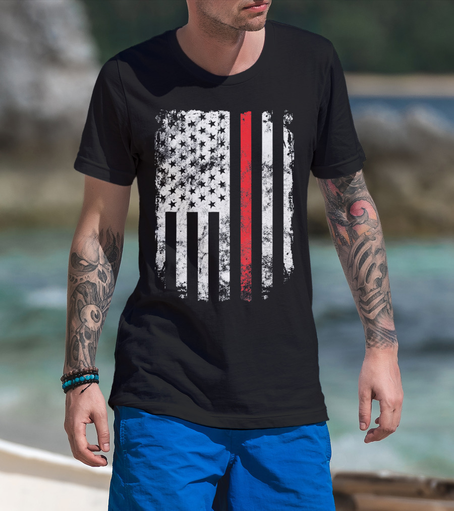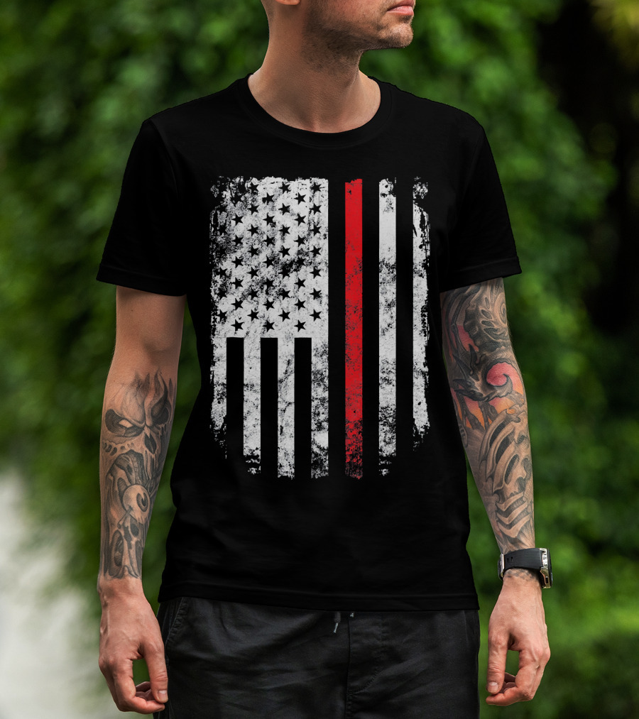 Thin Red Line American Flag Fireman Firefighter T-Shirt