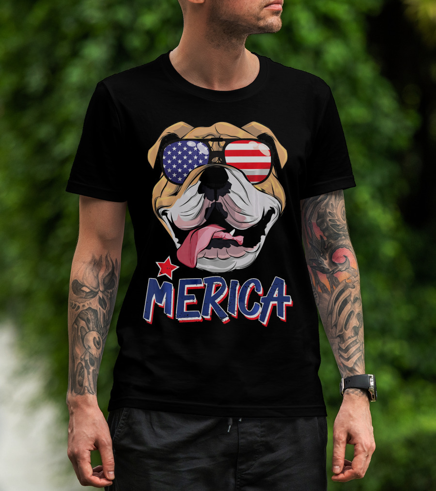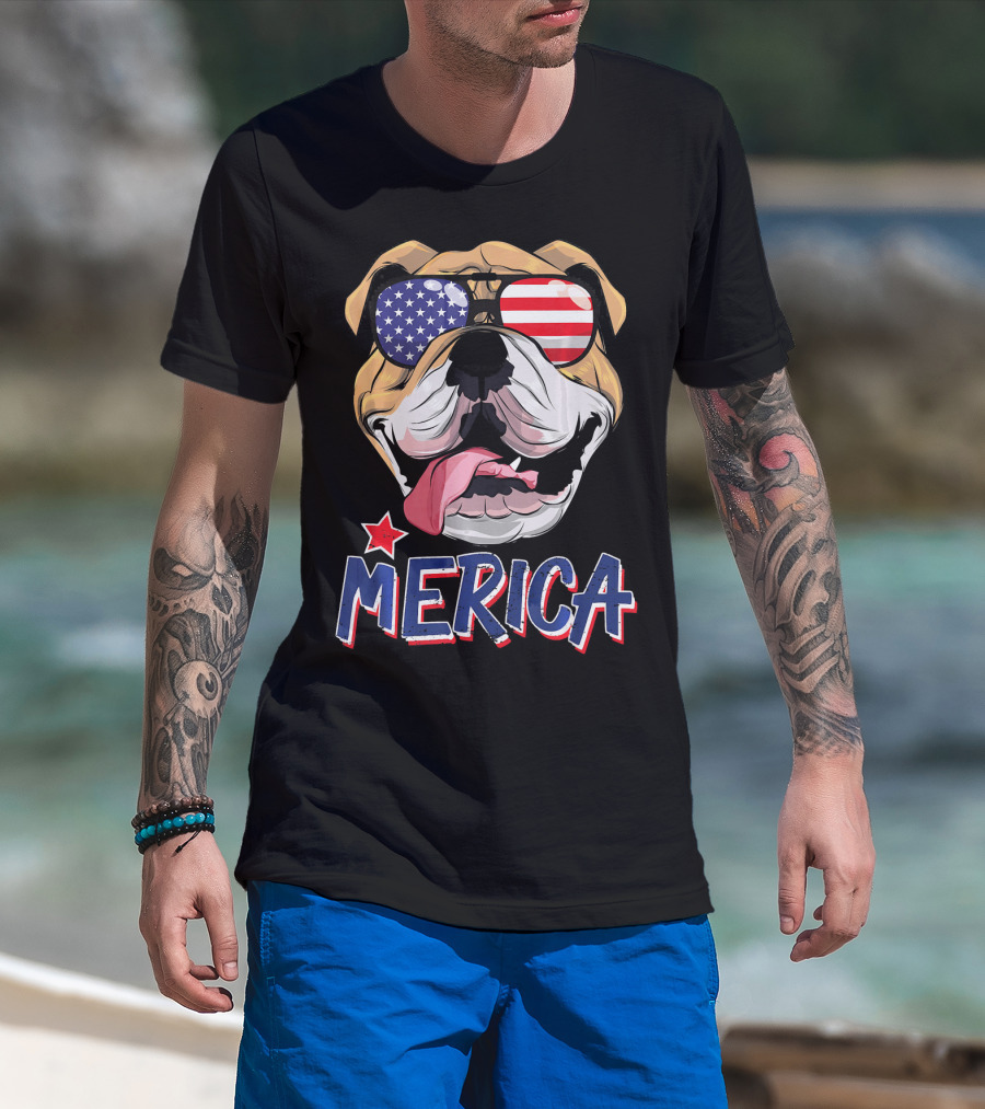 English Bulldog Merica Sunglasses Fourth Of July T-Shirt