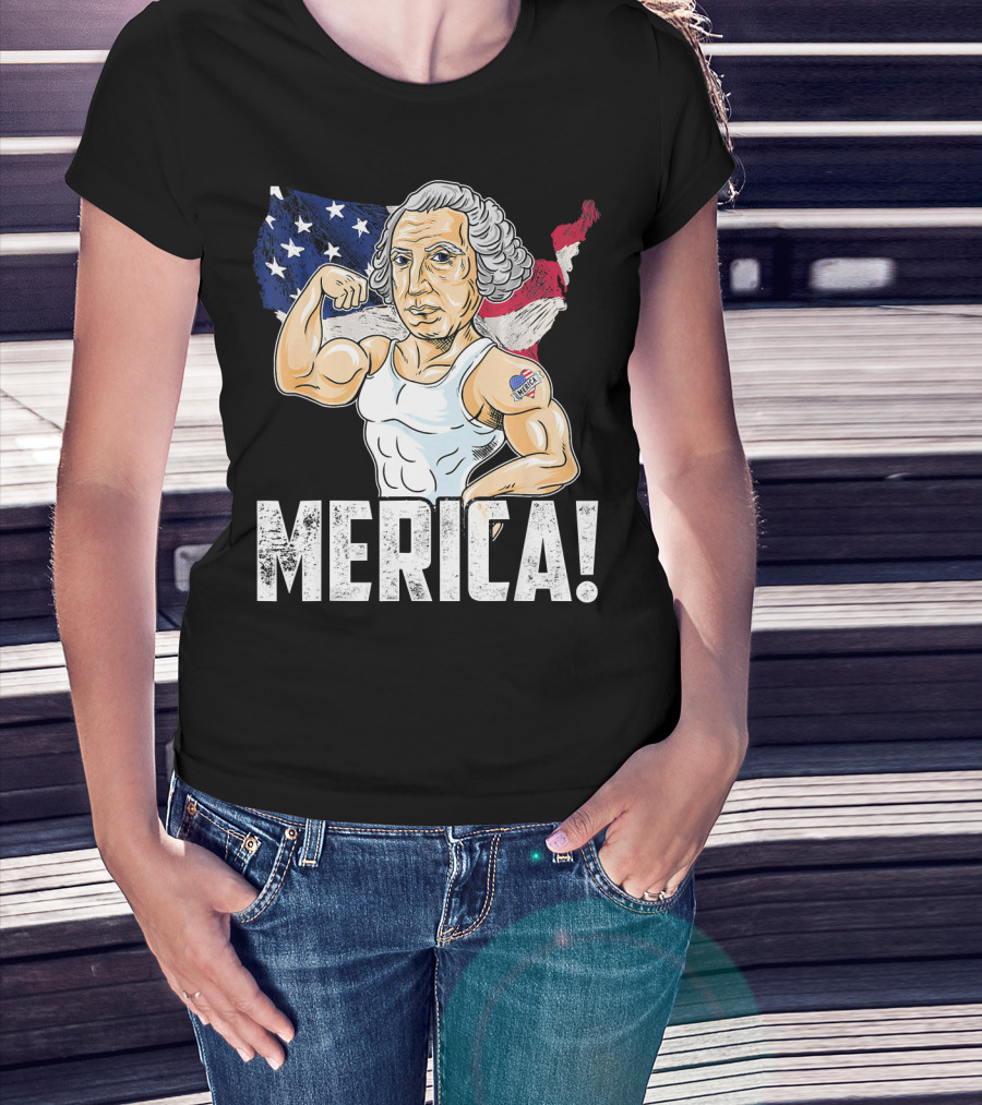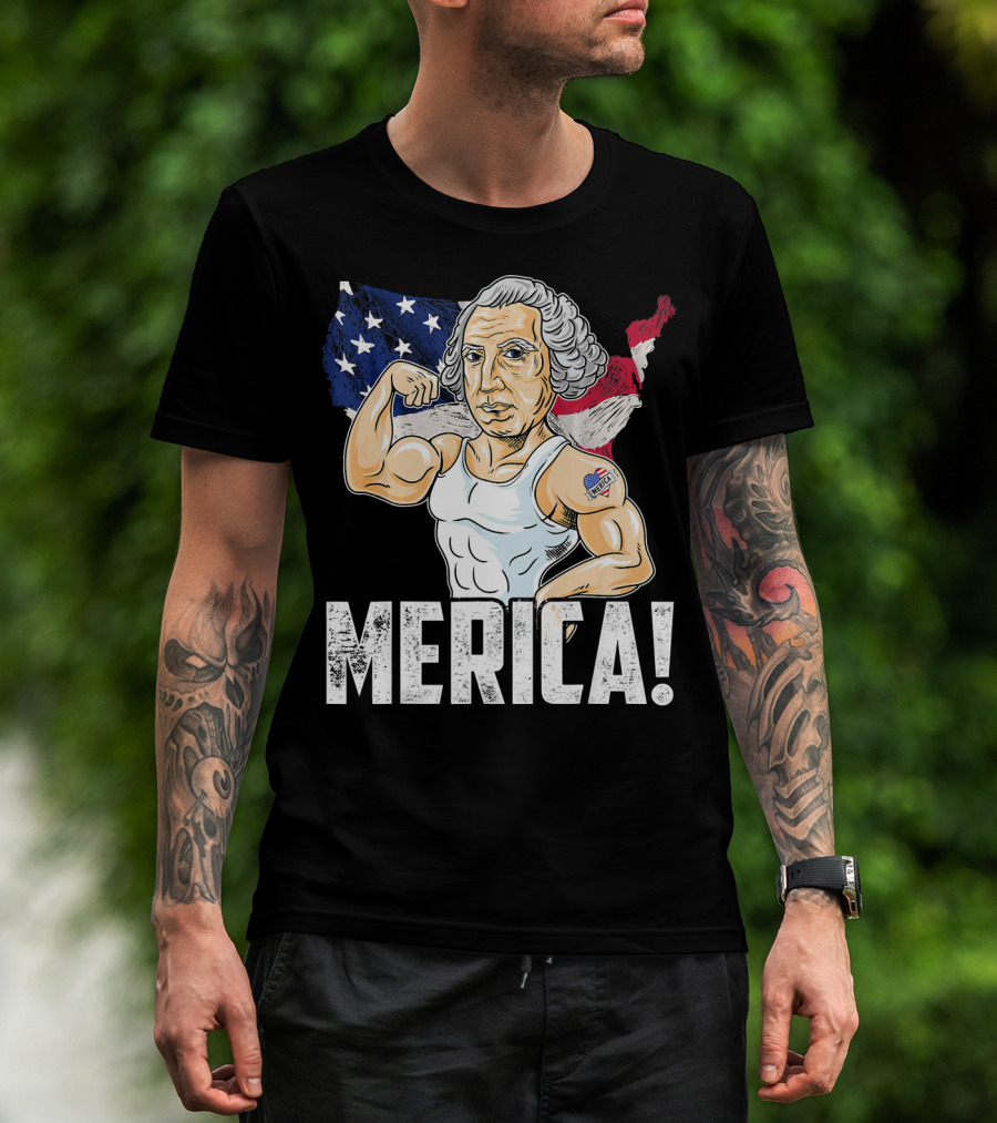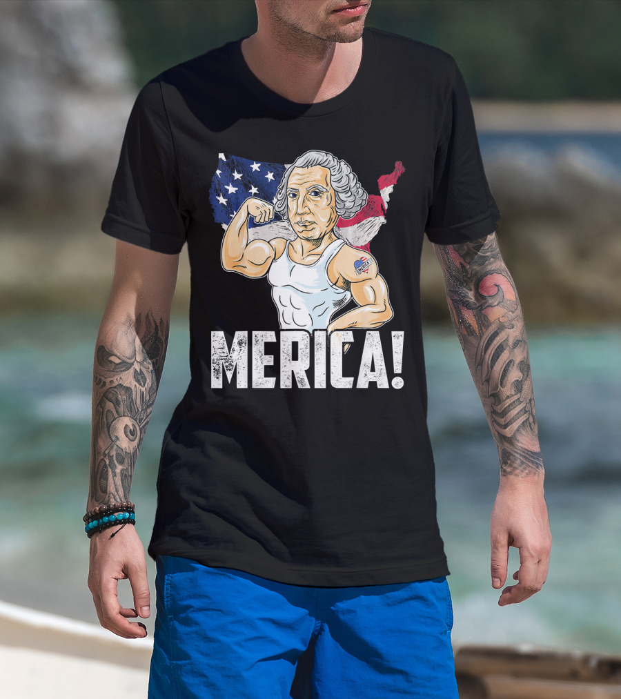George Washington Muscles Merica USA Flag Background T-Shirt