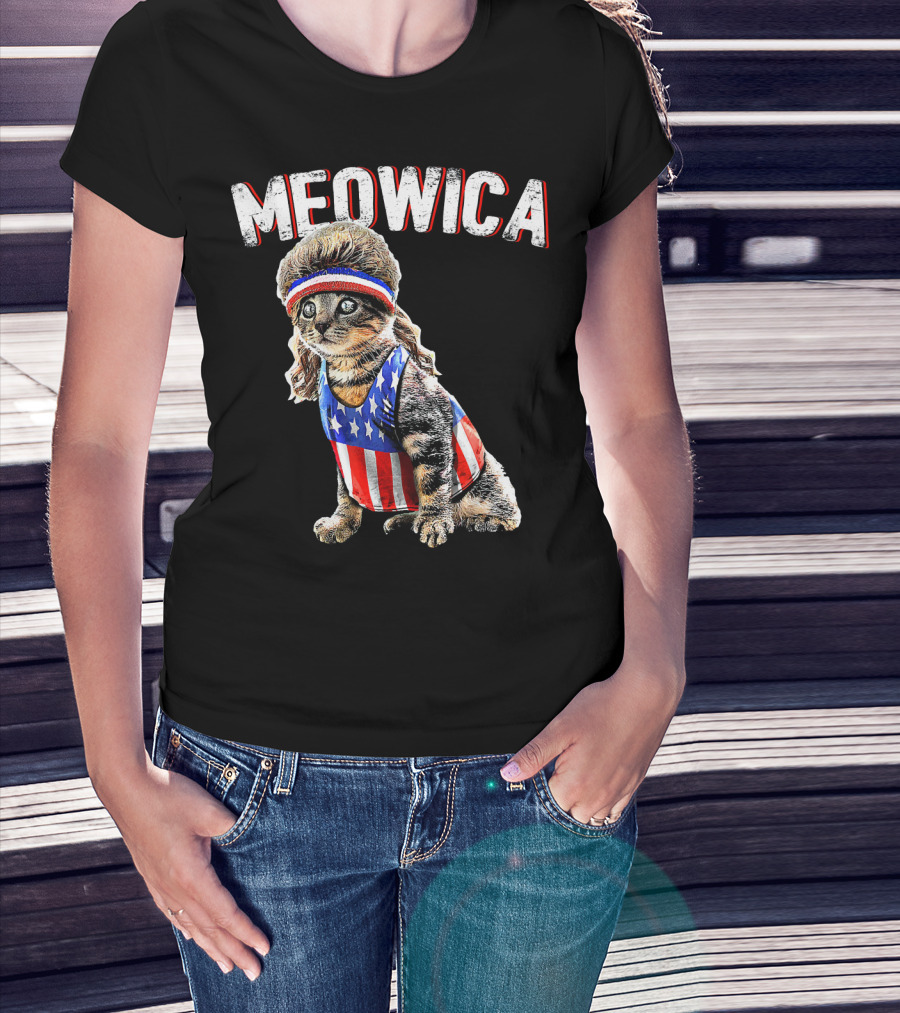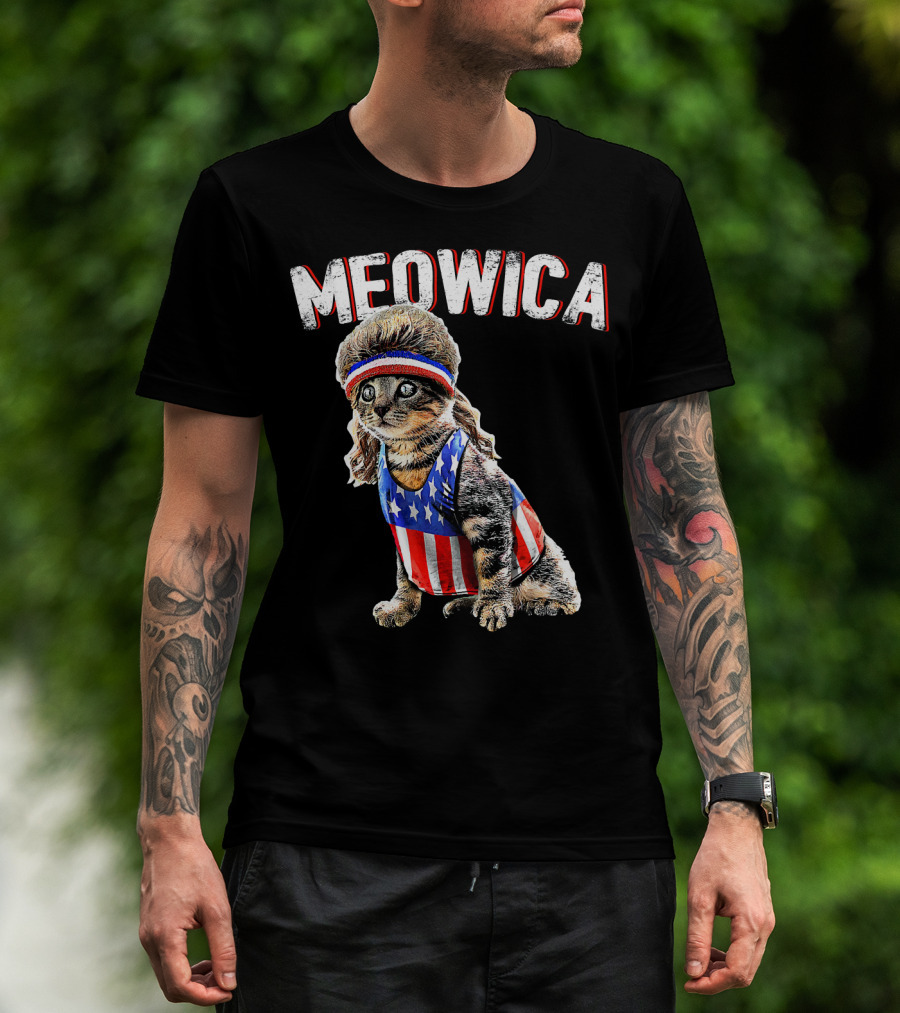 The Meowica Cat Mullet American Flag Headband Stars and Stripes Tank Top T-shirt is designed for everyday wear and a consistent fit. Fabric is pre-shrunk ring-spun cotton with durable stitching. See the size chart below for exact measurements.