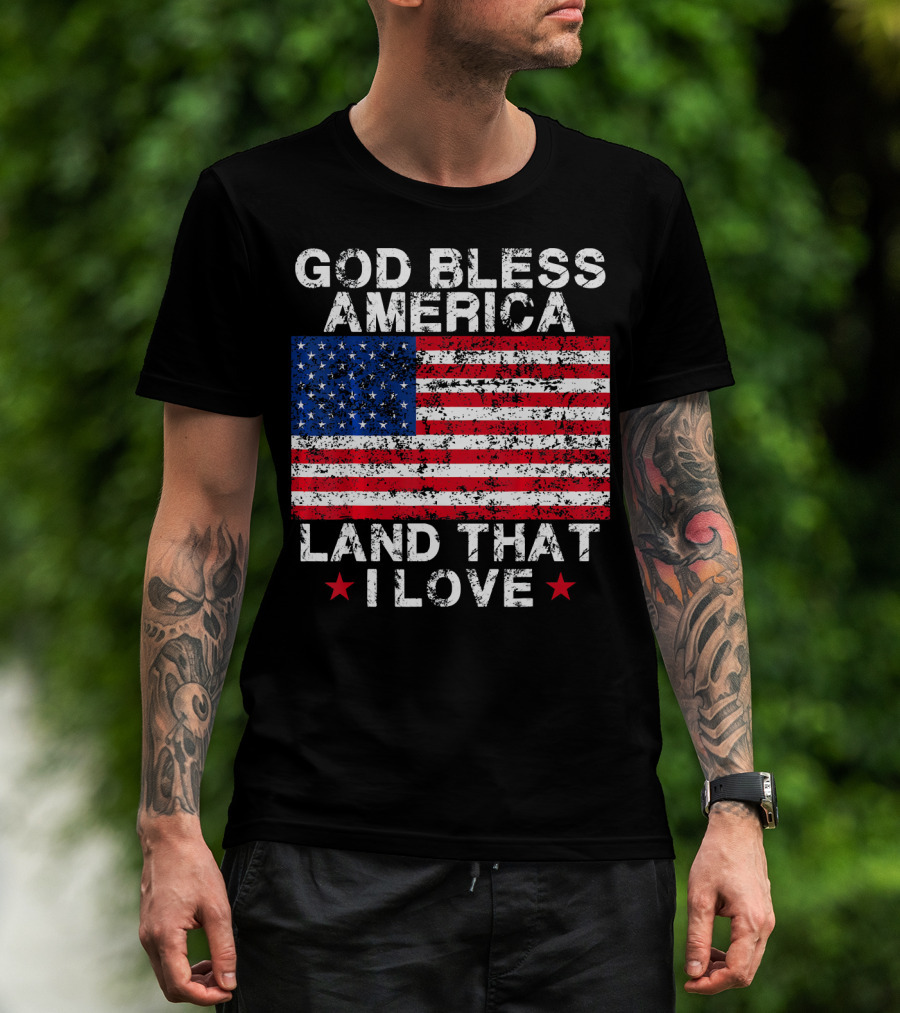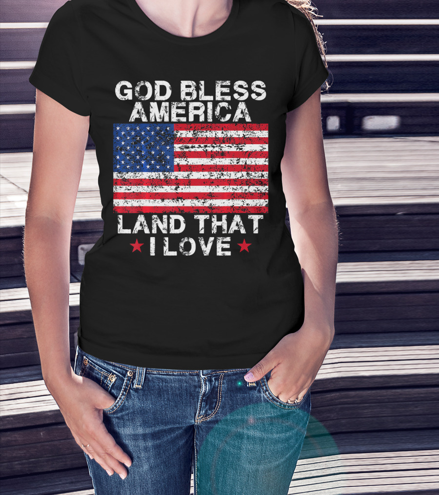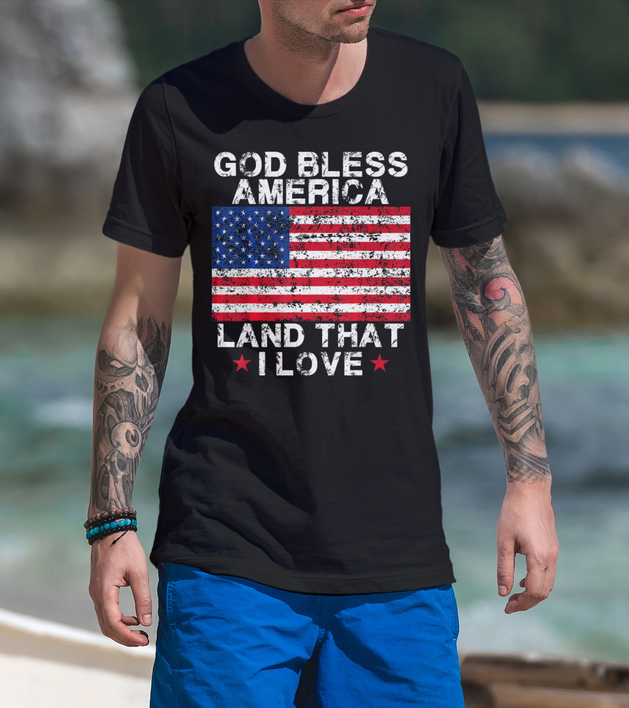 God Bless America Land That I Love Vintage Flag Stars T-Shirt