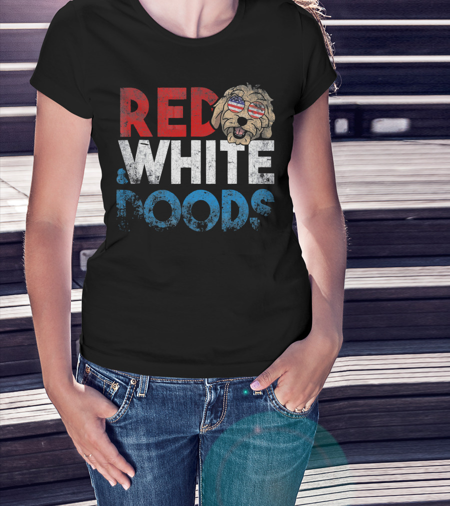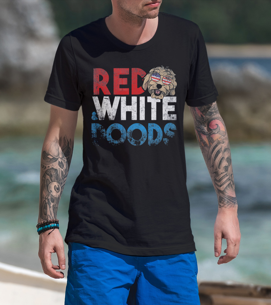 Red White Doods Funny Goldendoodle American Flag T-Shirt