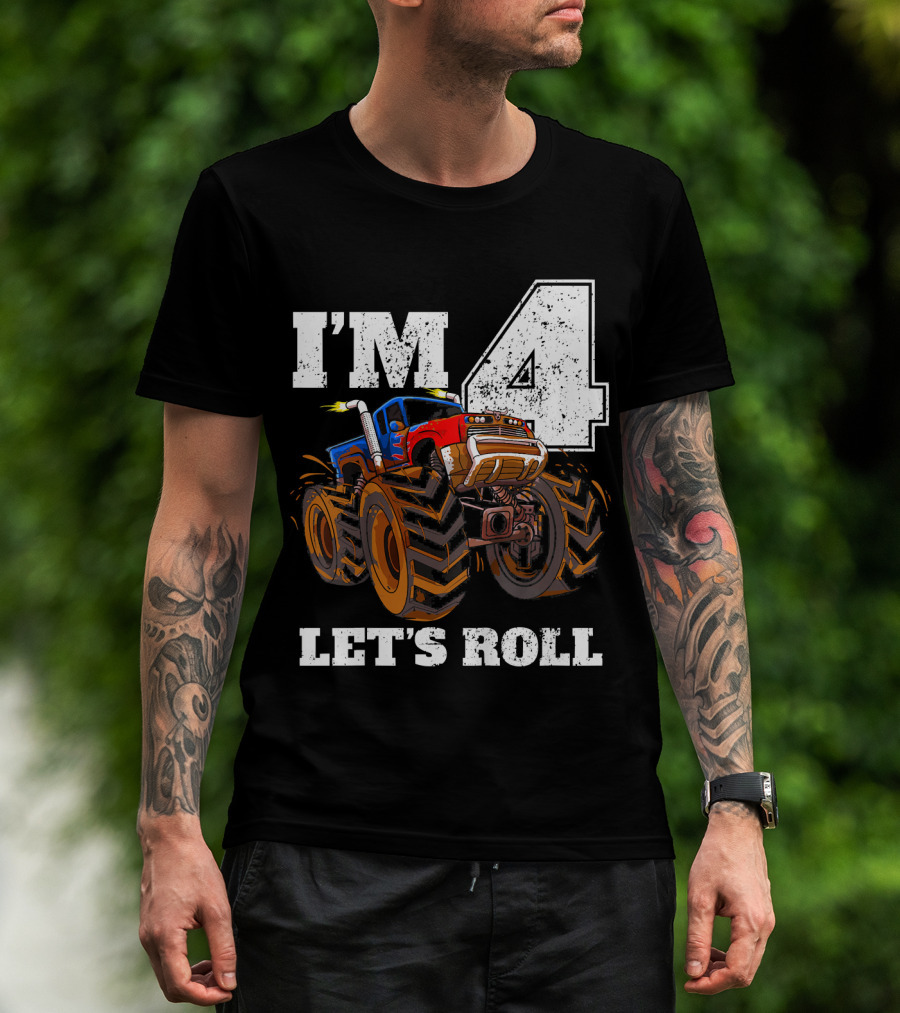 I'm 4 Let's Roll Monster Truck Birthday T-Shirt