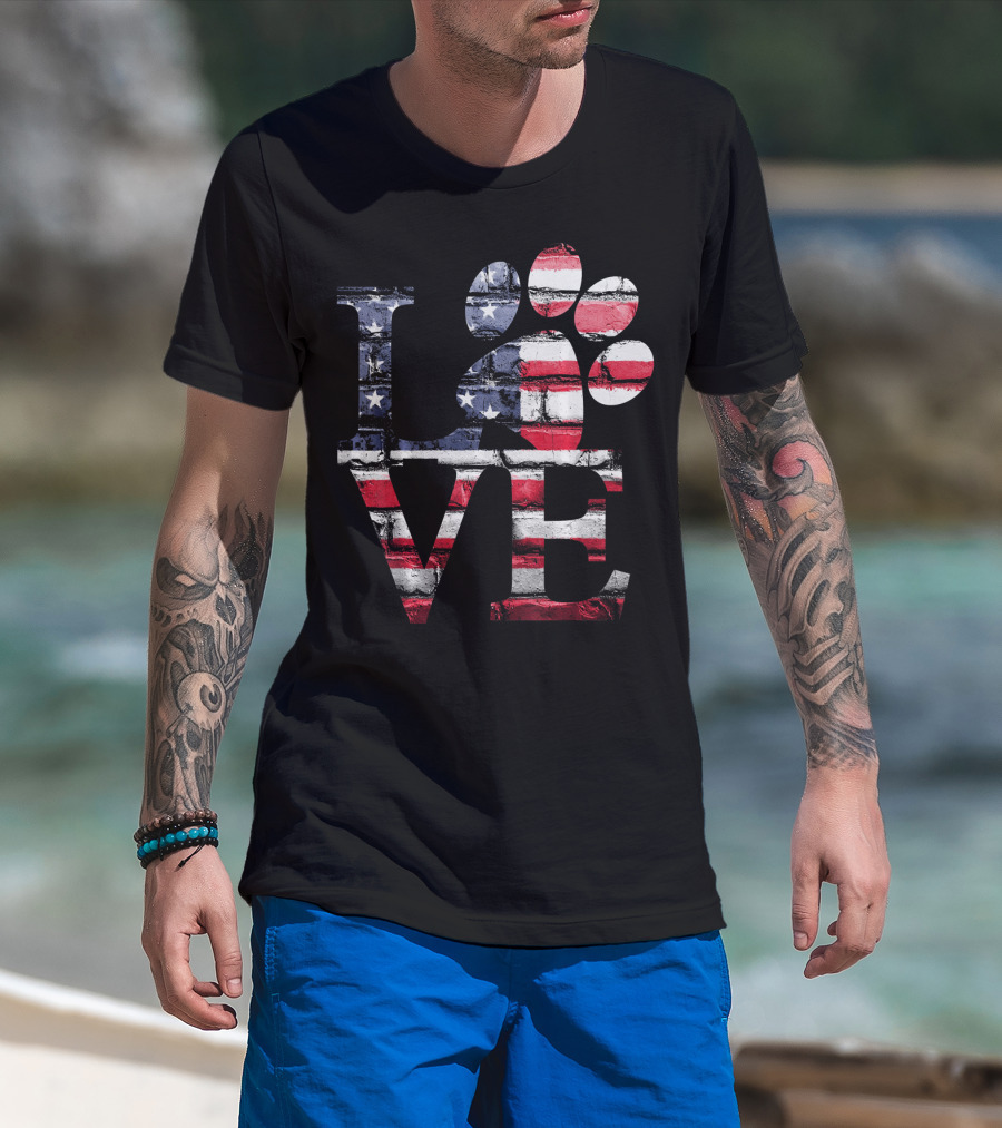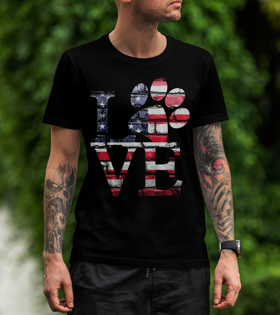 Patriotic Love USA Flag Style With Dog Paw T-Shirt