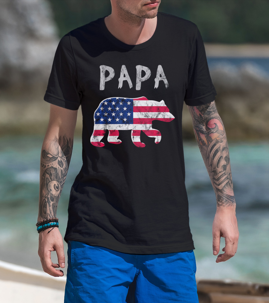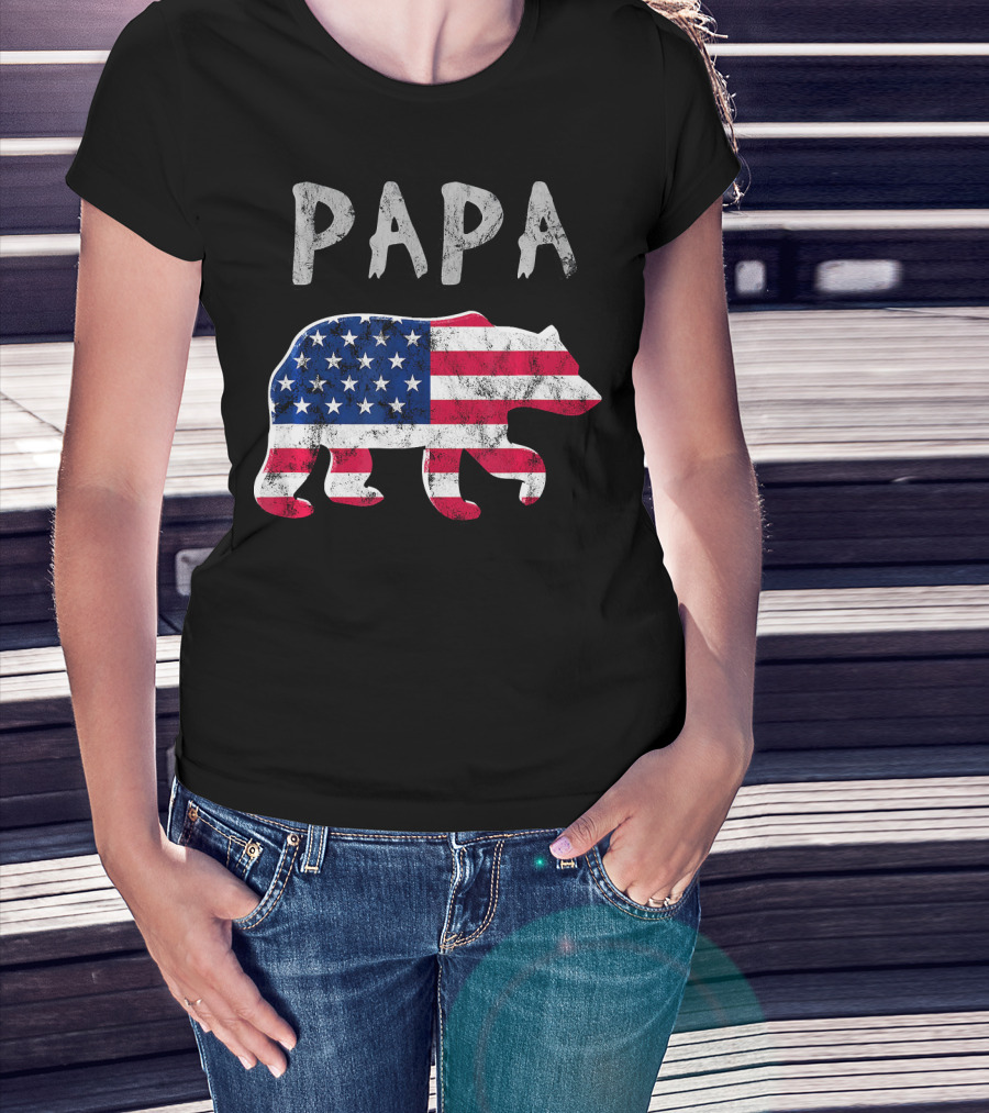 PAPA Bear USA Flag Patriotic Family T-Shirt