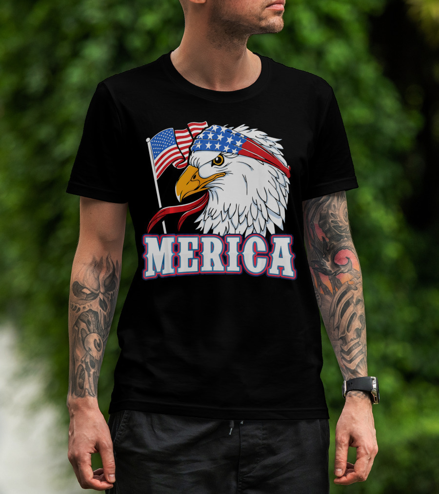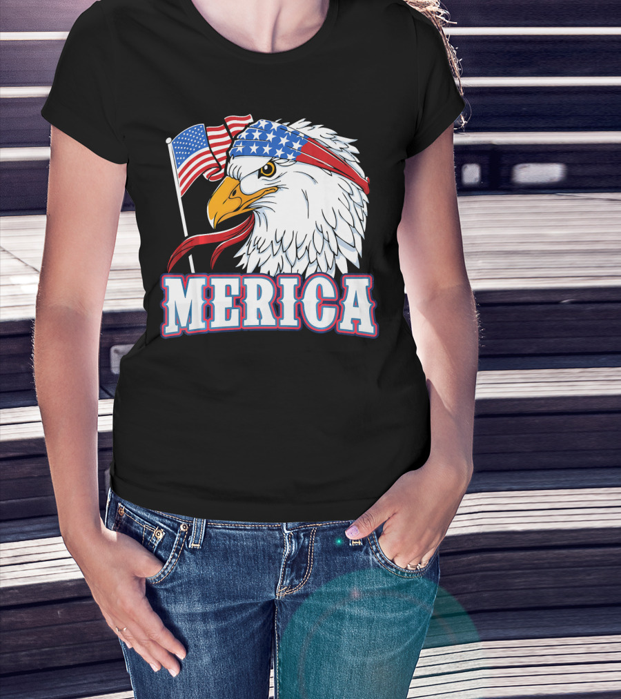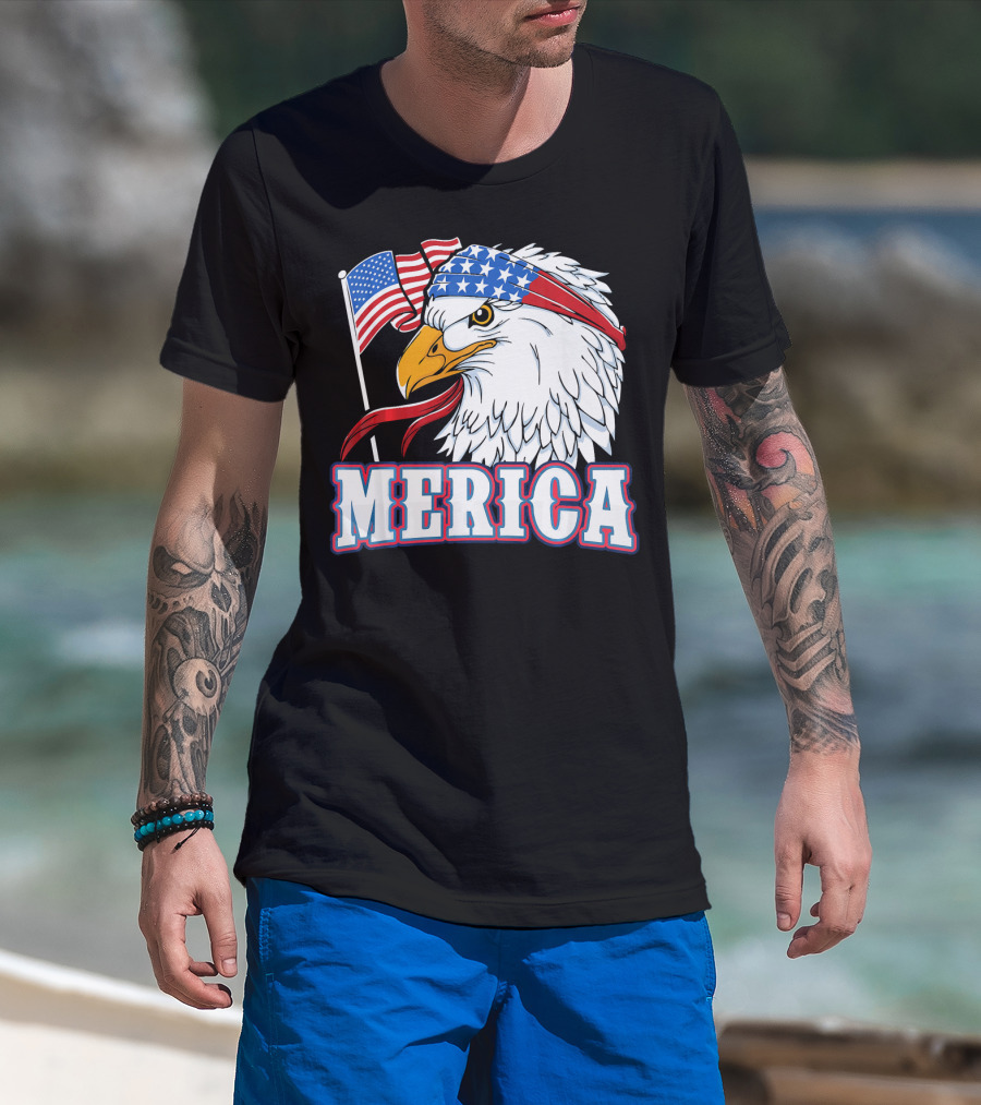 Merica Patriotic Bald Eagle American Flag Bandana USA Independence Day T-Shirt