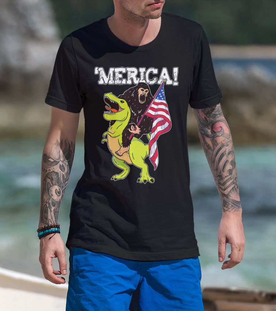 'Merica Bigfoot Dinosaur Fourth Of July Patriot T-Shirt