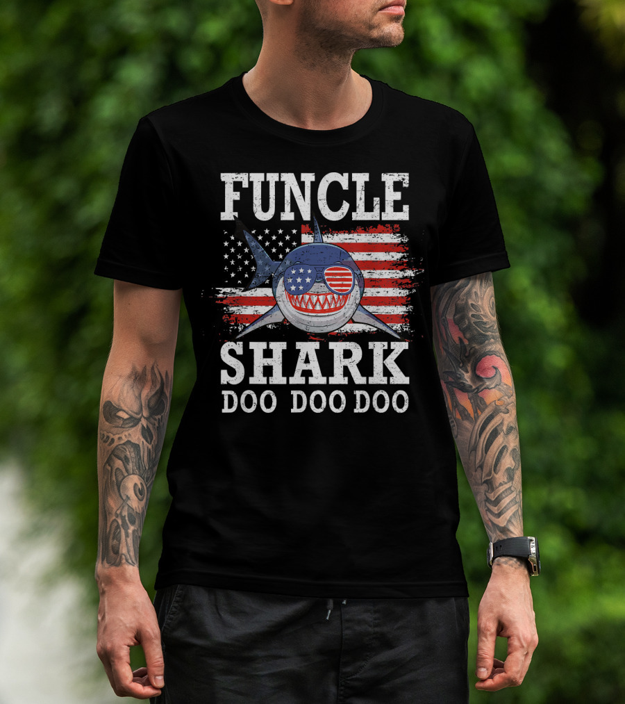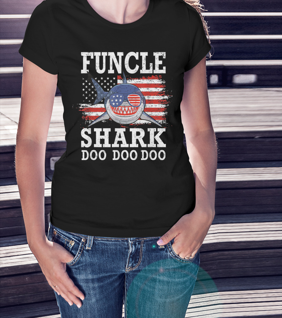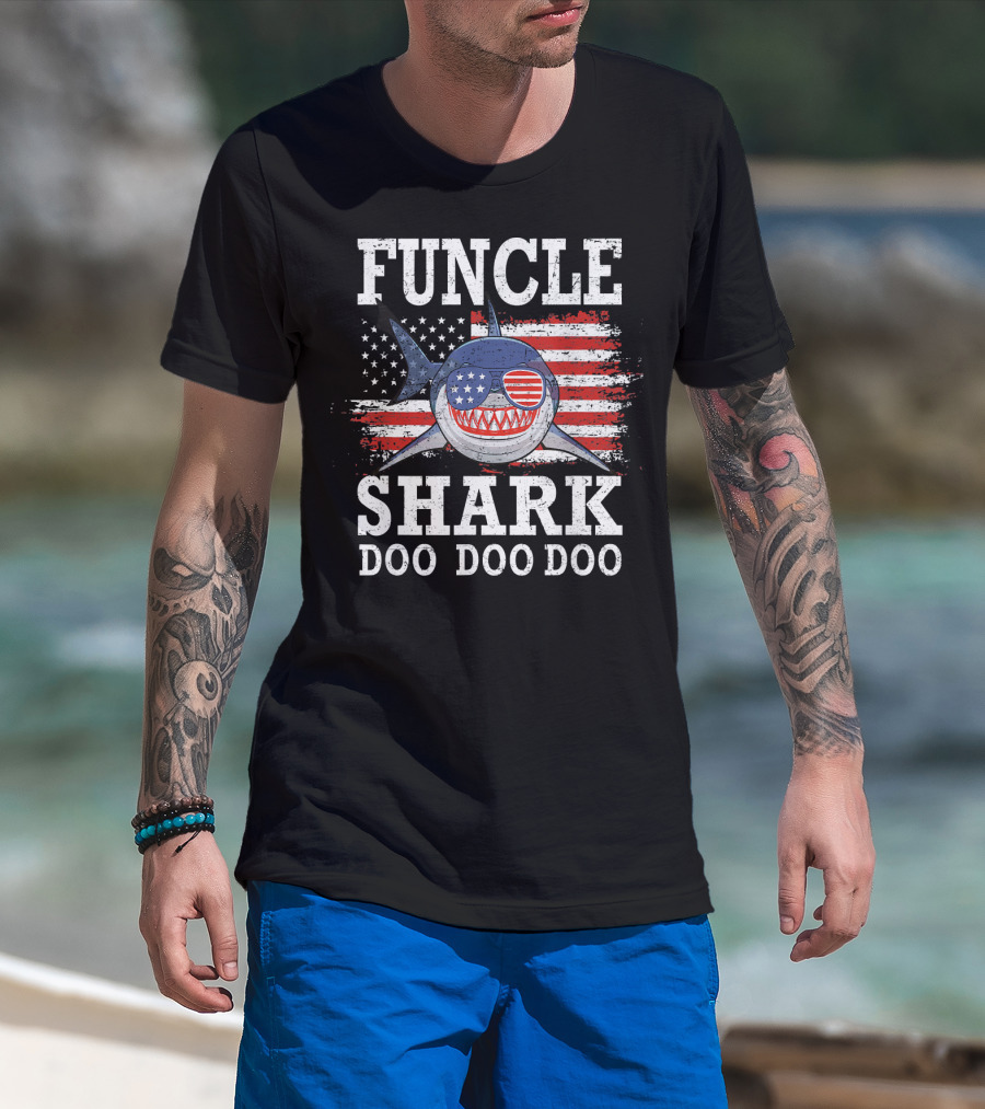 Funcle Shark Doo Doo Doo American Flag Sunglasses Patriotic T-Shirt