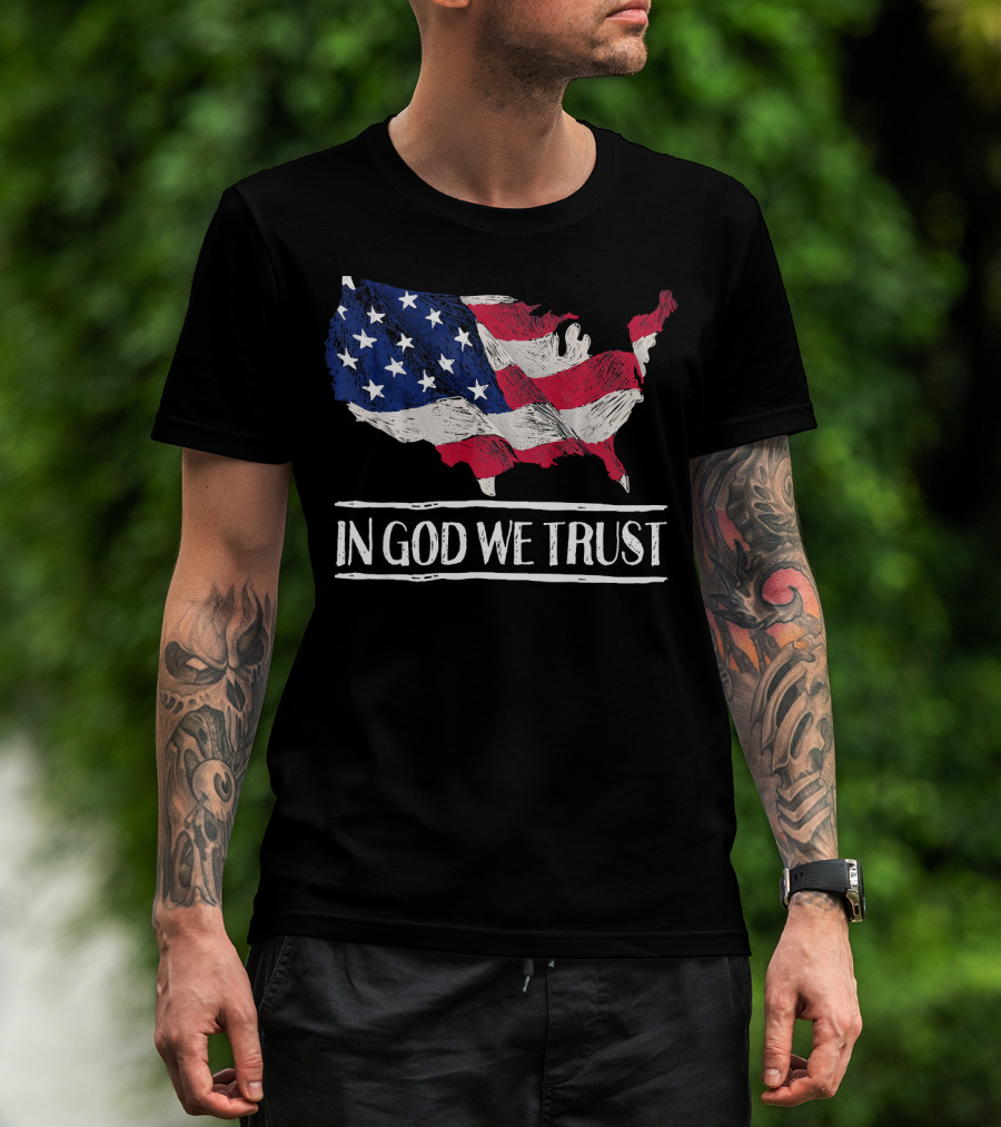 In God We Trust American Flag Map Patriotic Christian T-Shirt