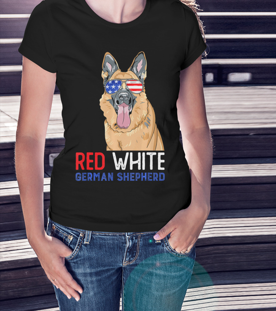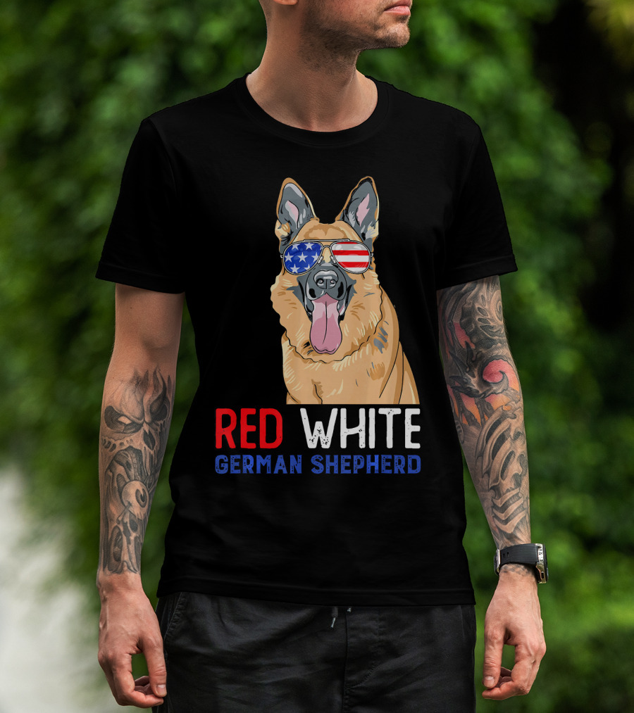 Red White German Shepherd USA Sunglasses Stars Stripes T-Shirt