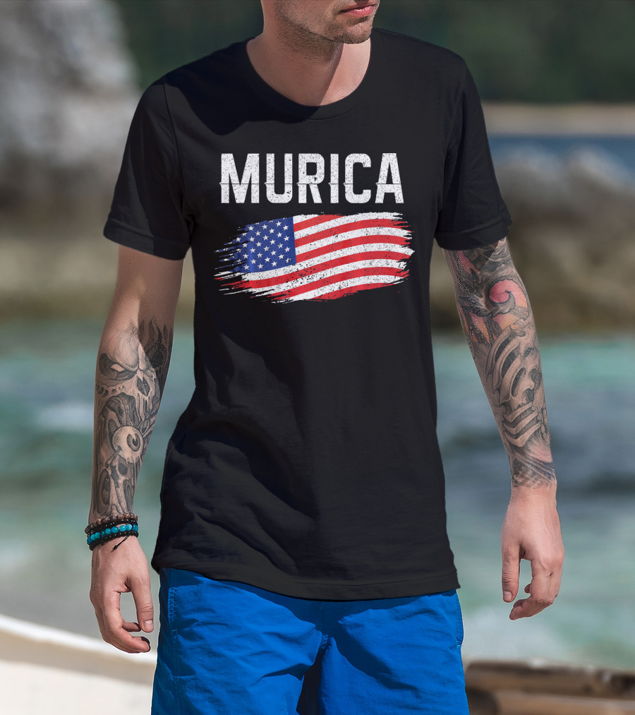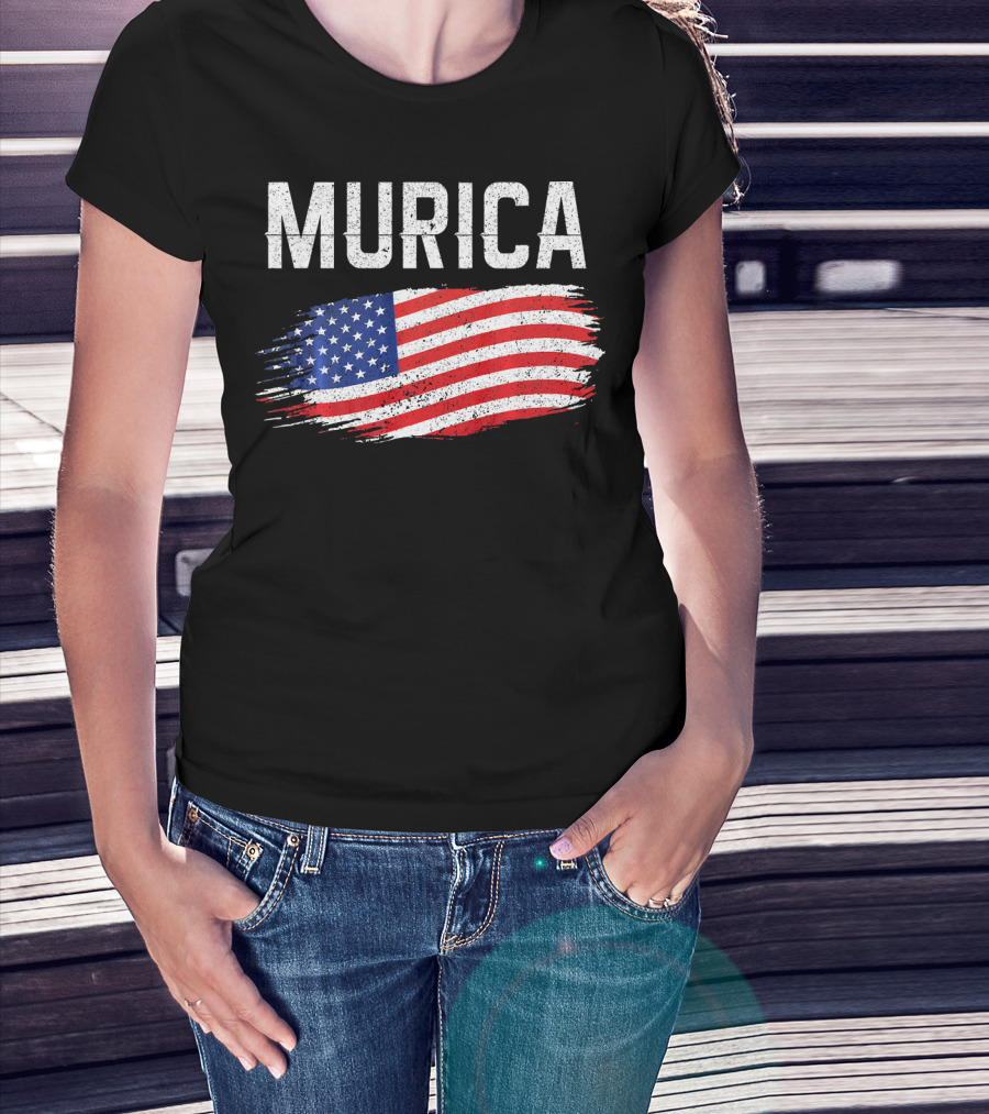 The Murica Distressed Brushstroke American Flag T-shirt is designed for everyday wear and a consistent fit. Fabric is pre-shrunk ring-spun cotton with durable stitching. See the size chart below for exact measurements.