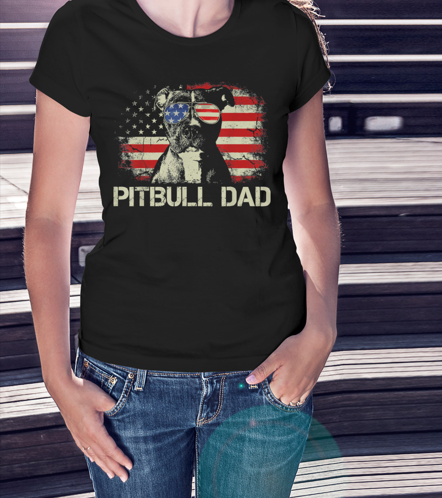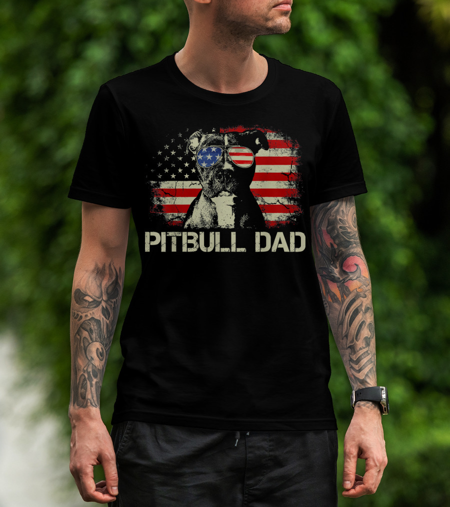 Pitbull Dad American Flag Sunglasses Patriotic Mens Best Ever T-Shirt