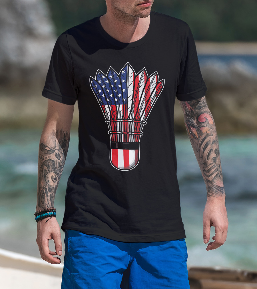 Funny Badminton Shuttlecock American Flag Patriot Player Love T-Shirt