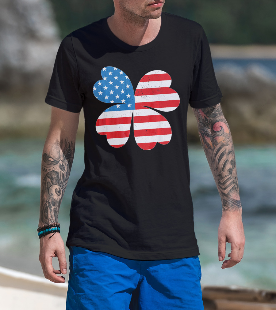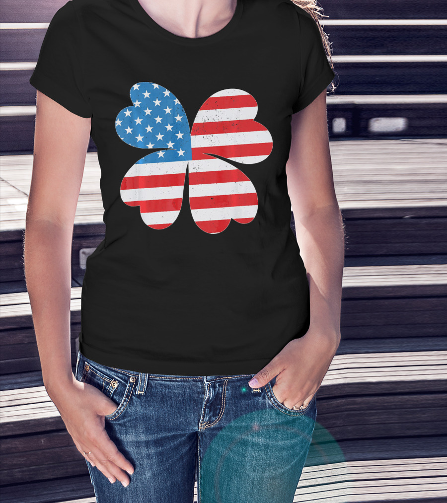 Independence Day American Flag 4 Leaf Clover Shamrock T-Shirt