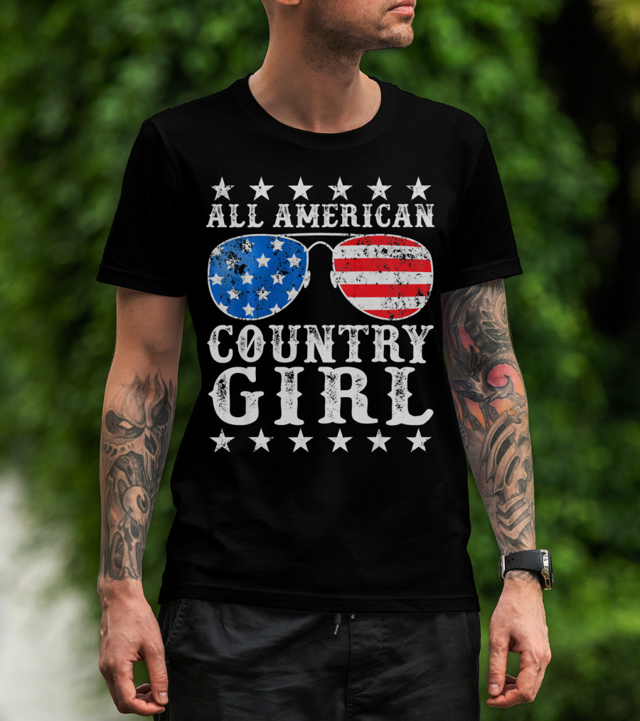 All American Country Girl Stars And Stripes Sunglasses USA T-Shirt