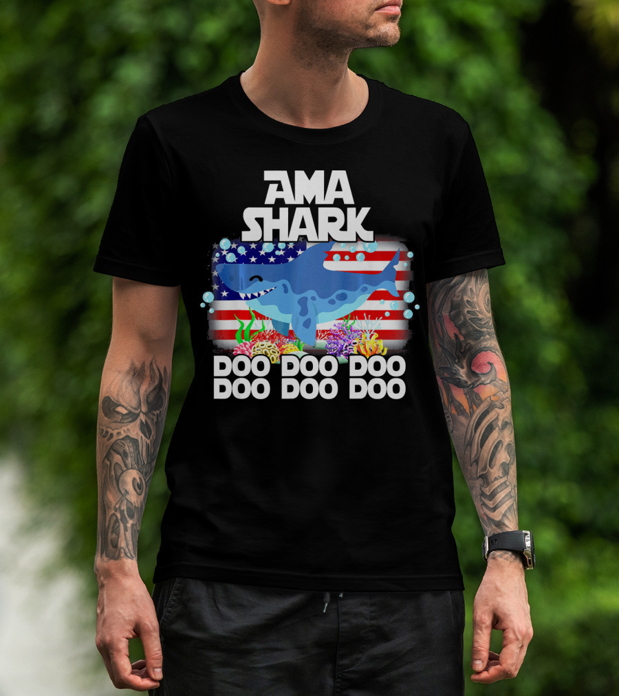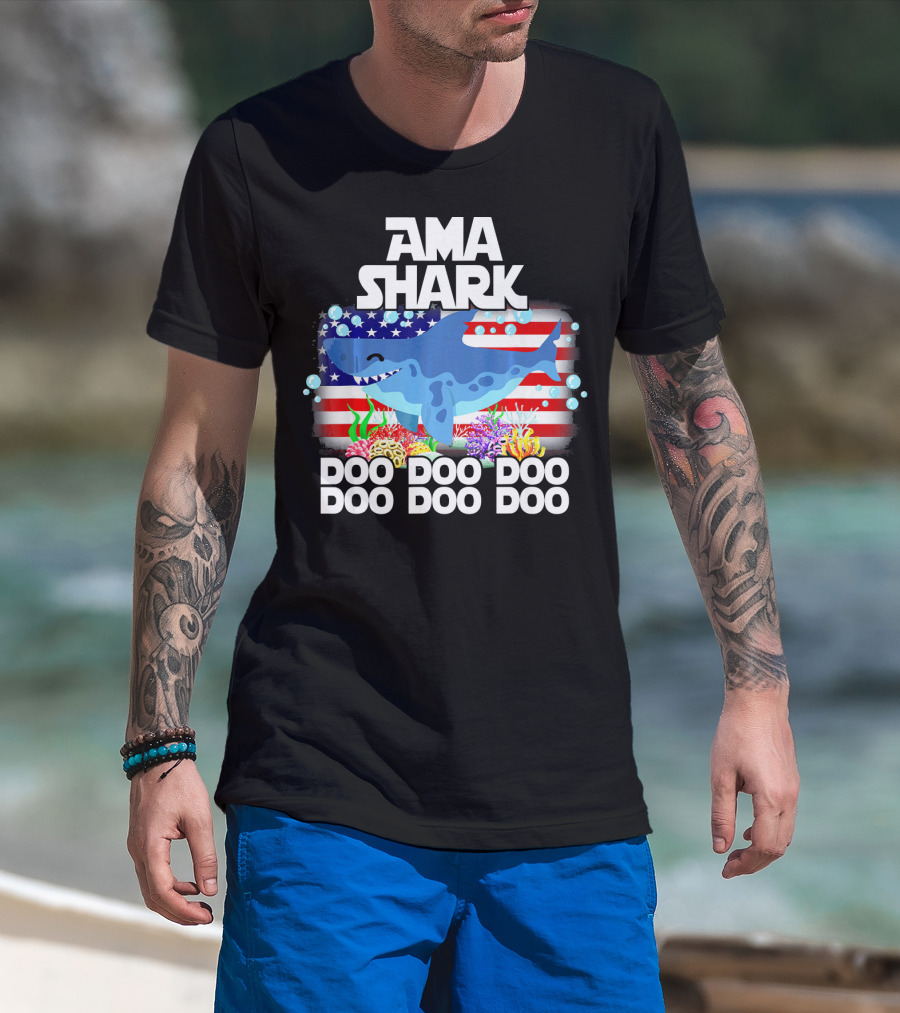 AMA Shark US Flag Doo Doo Doo T-Shirt