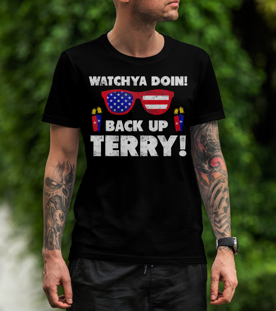 WATCHYA DOIN BACK UP TERRY USA FLAG SUNGLASSES T-Shirt
