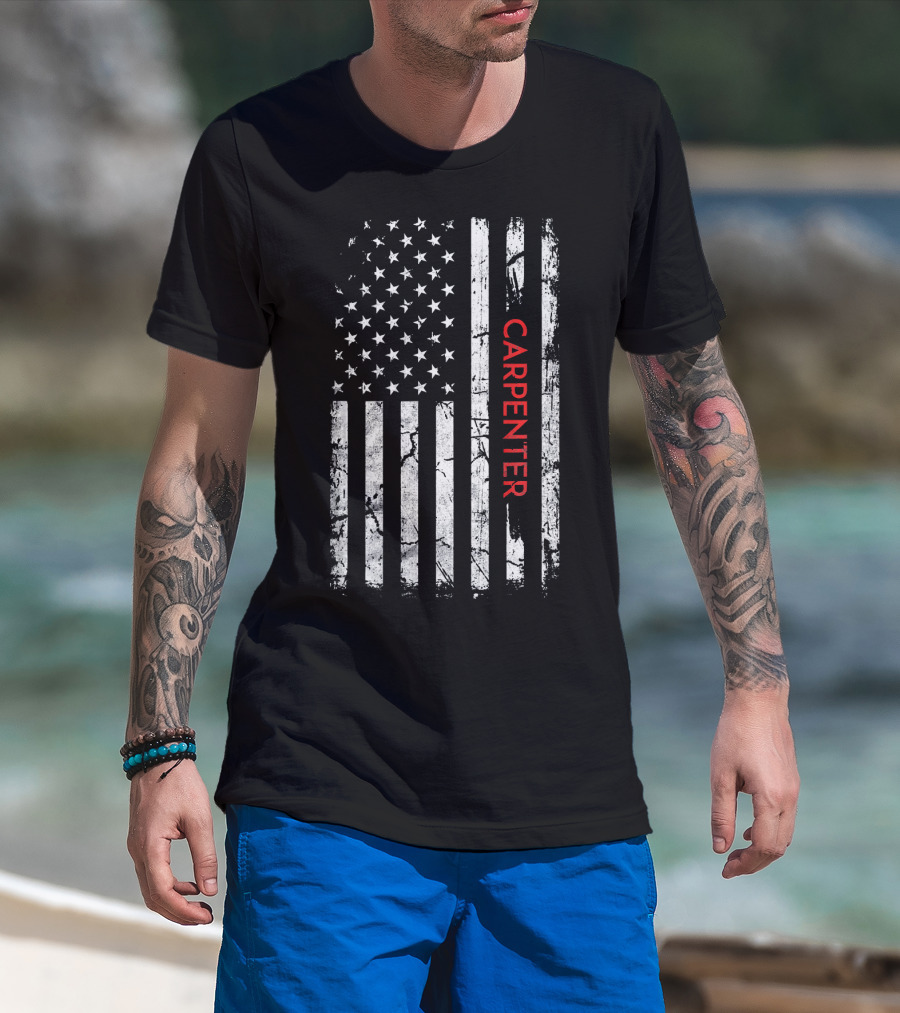 Carpenter American Flag Distressed Patriotic T-Shirt