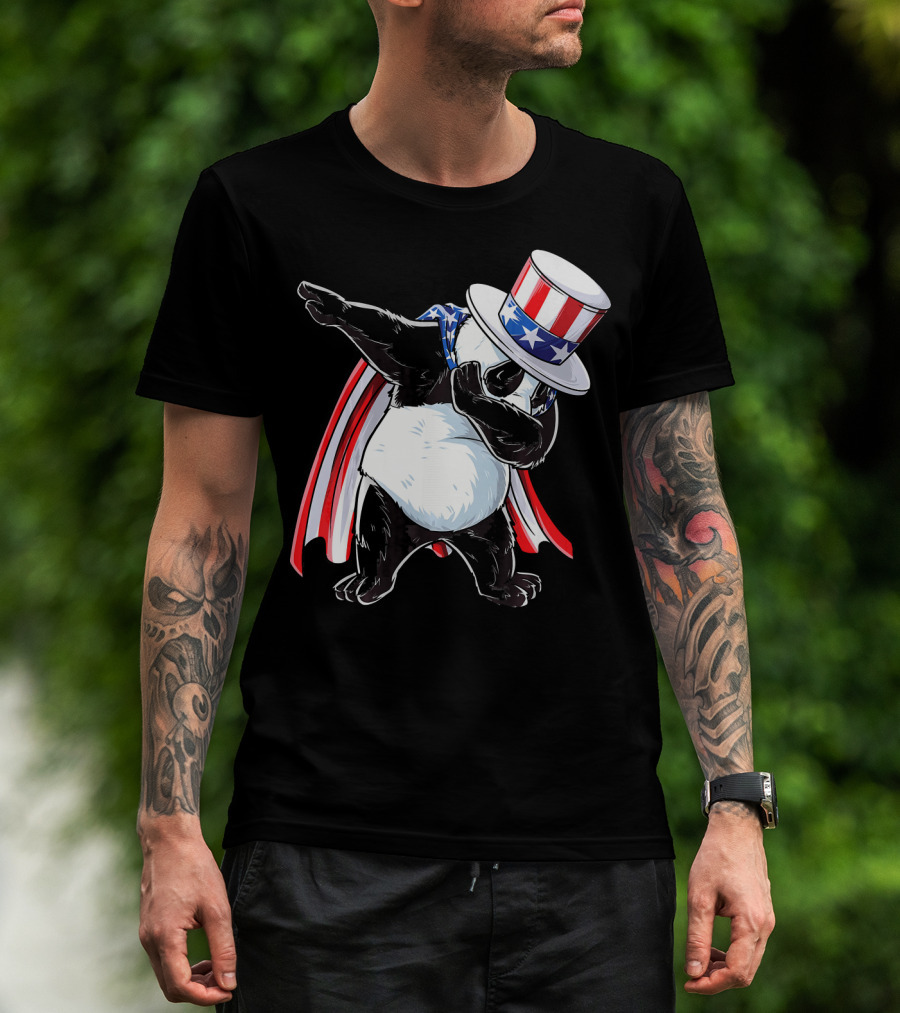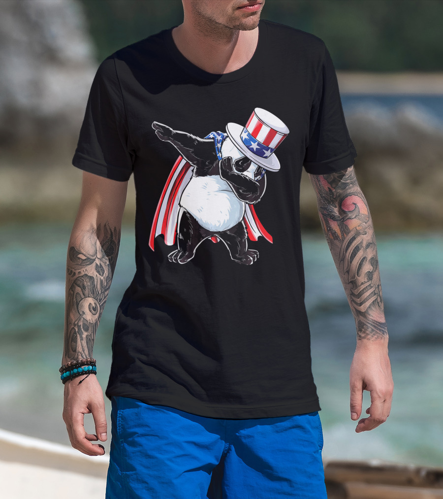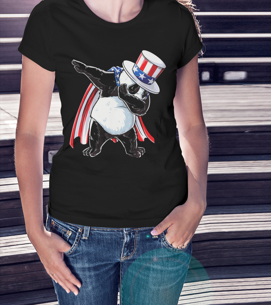 Uncle Sam Panda Dabbing With Stars And Stripes Hat And Cape T-Shirt