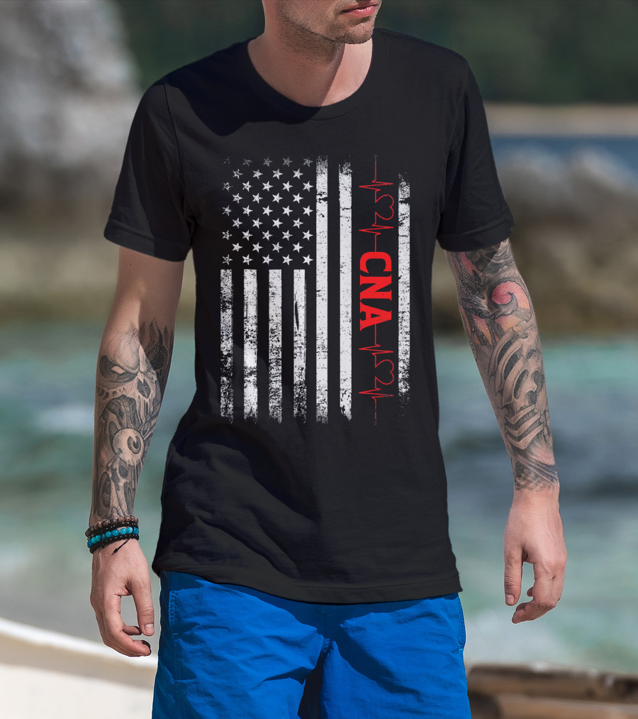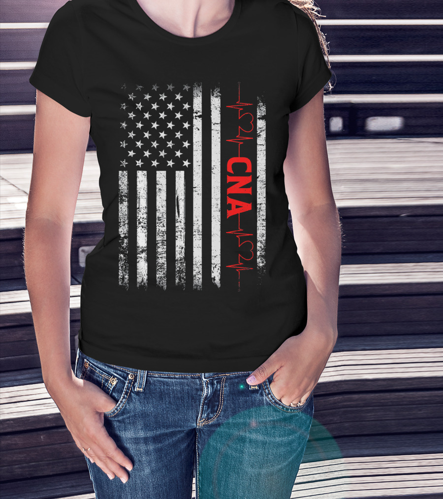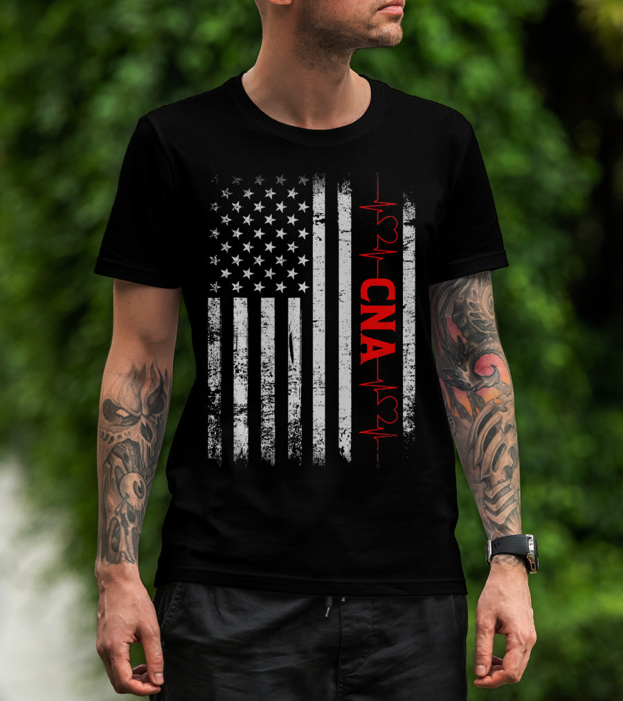 American Flag Heartbeat Red CNA Patriotic Nurse T-Shirt