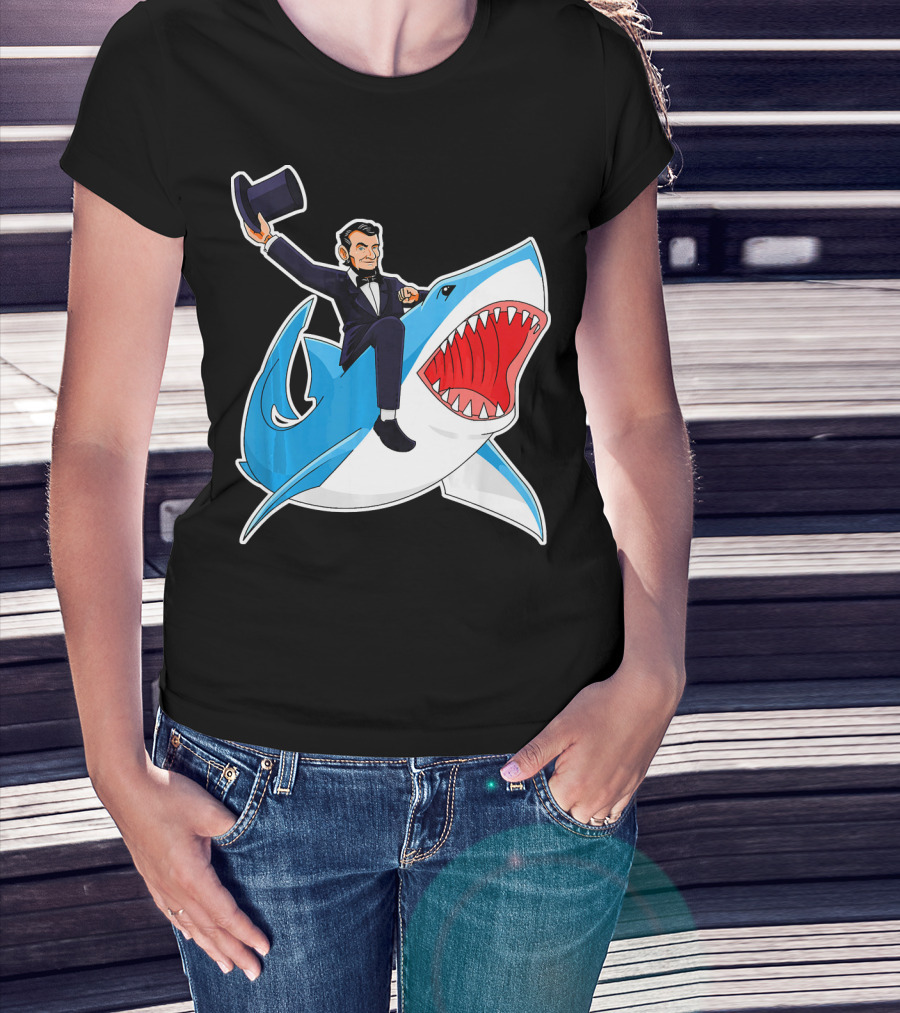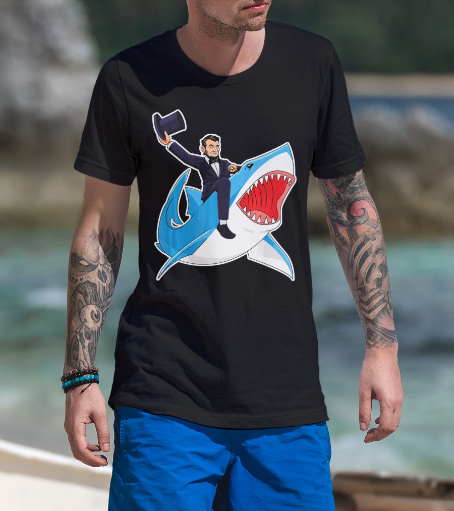 Abraham Lincoln Riding A Shark Waving Top Hat Adventure T-Shirt
