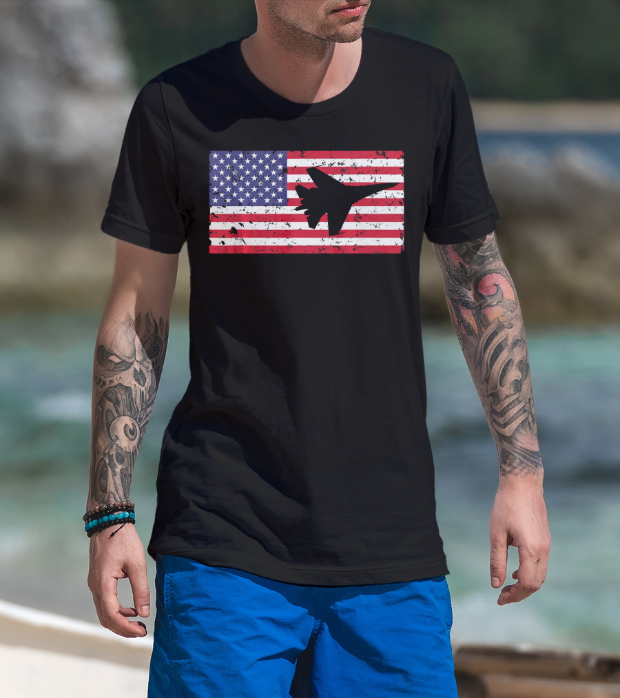 American Flag Jet Silhouette Patriotic Airplane T-Shirt