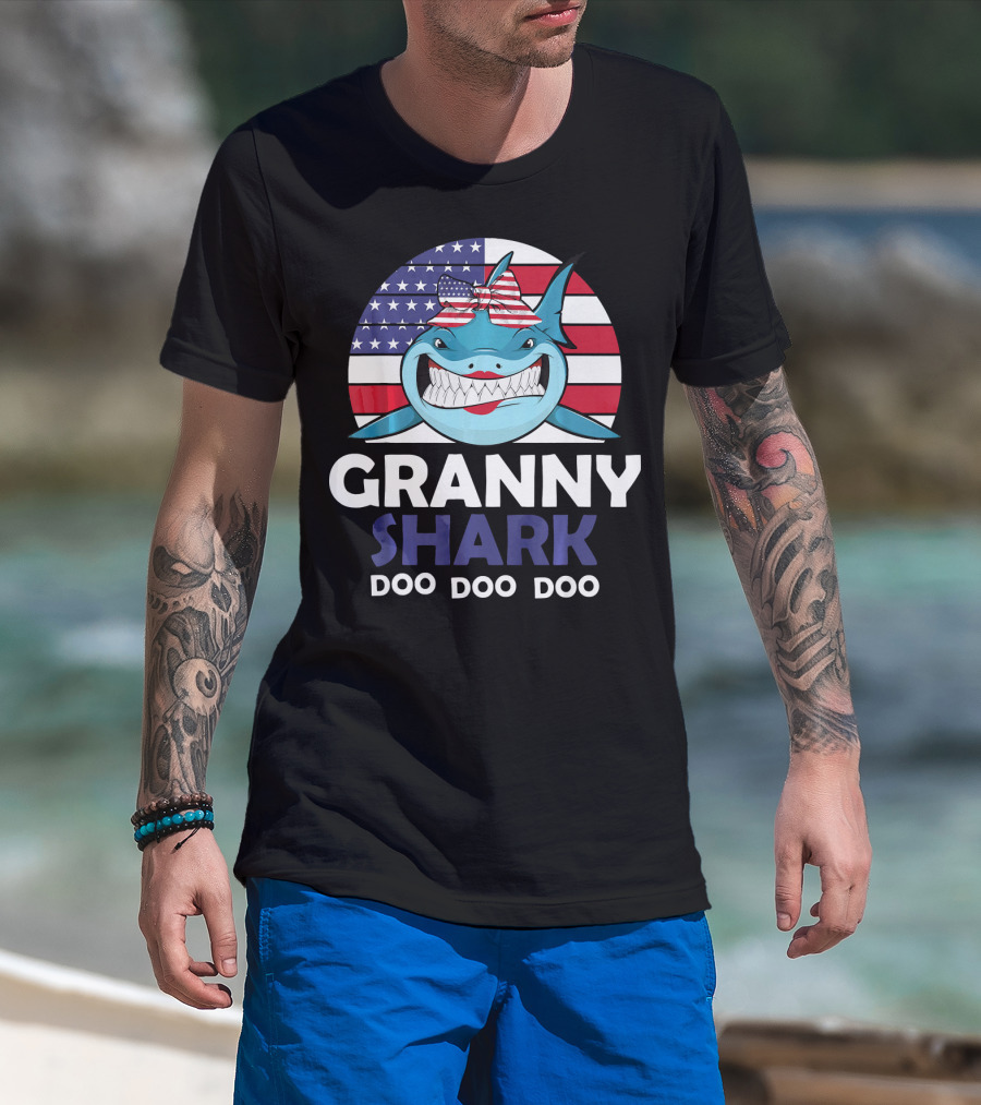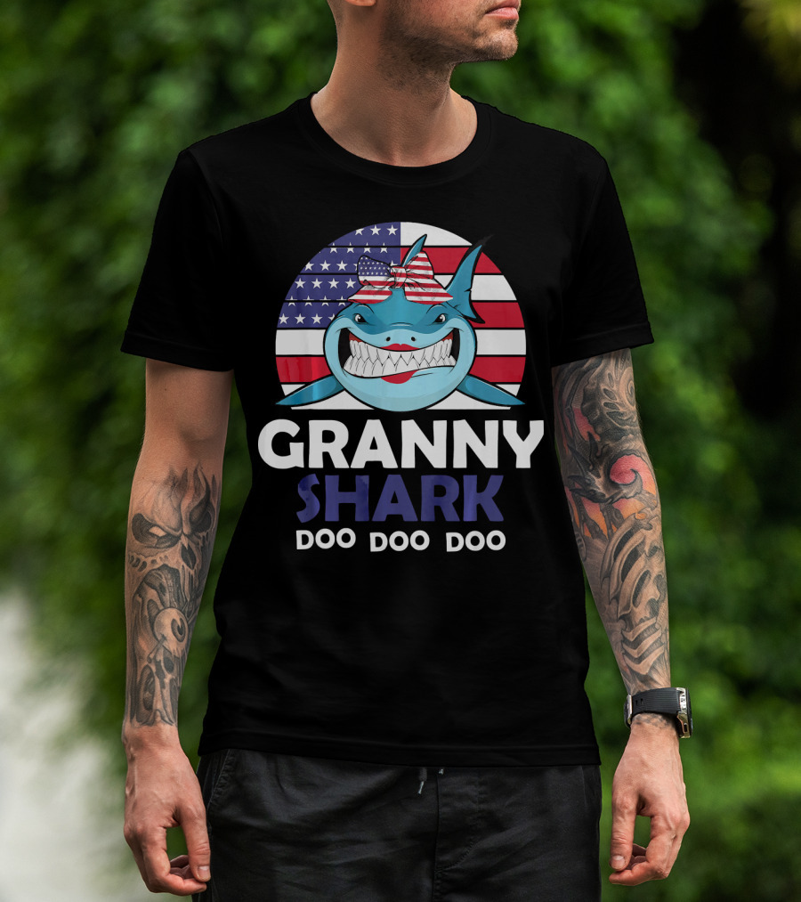 How much will this Granny Shark Doo Doo Doo American Flag Bow Women's Patriotic shirt shrink?