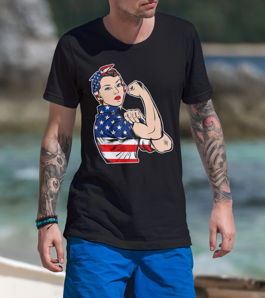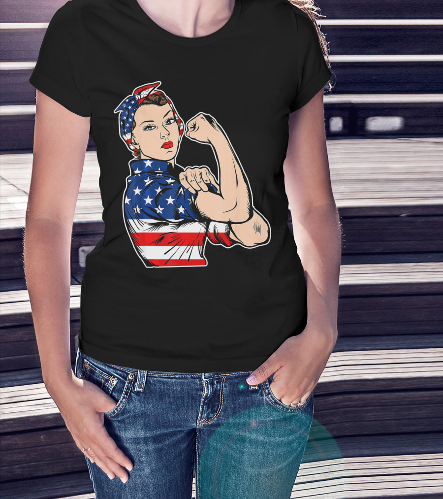 USA Flag Rosie The Riveter Bandana Feminist T-Shirt
