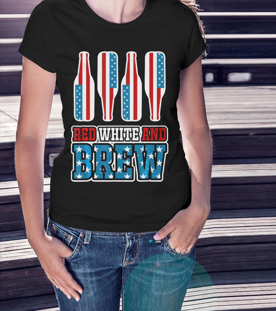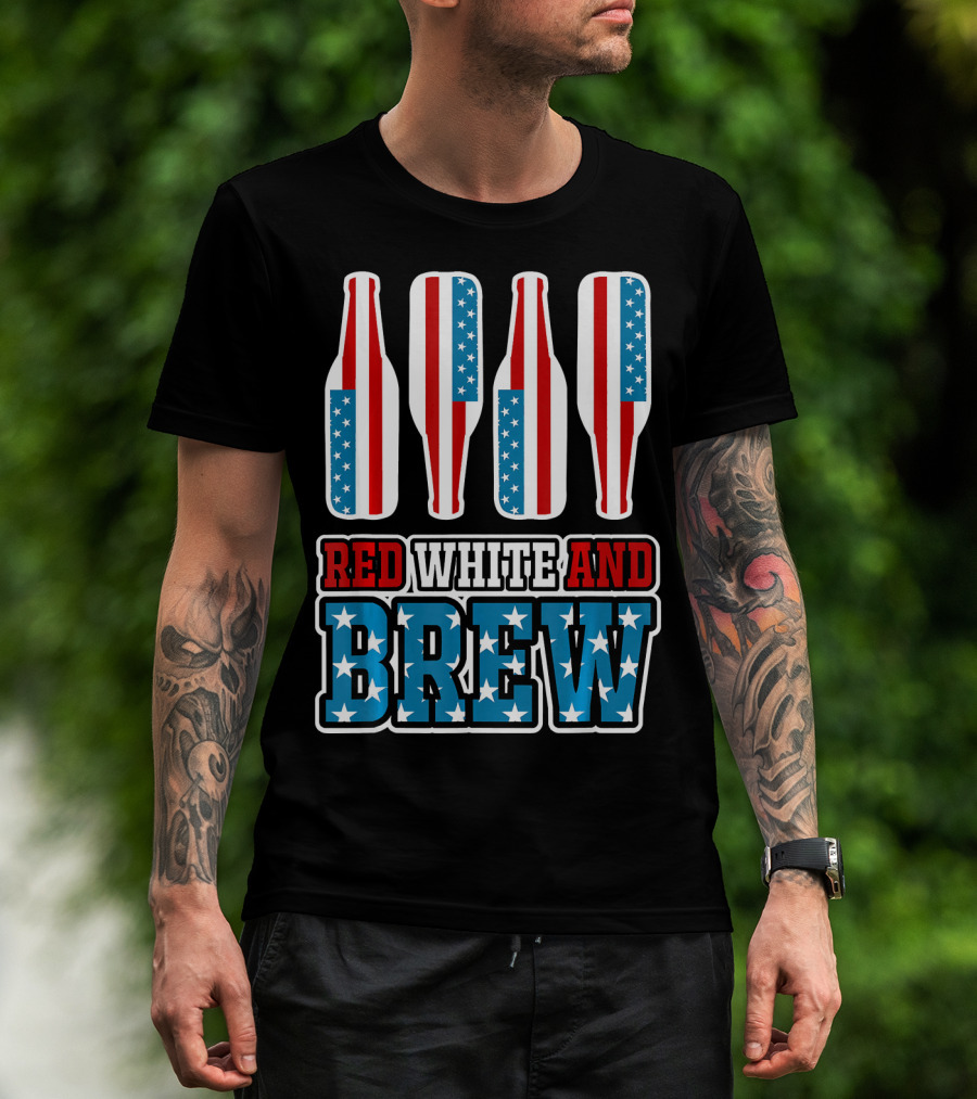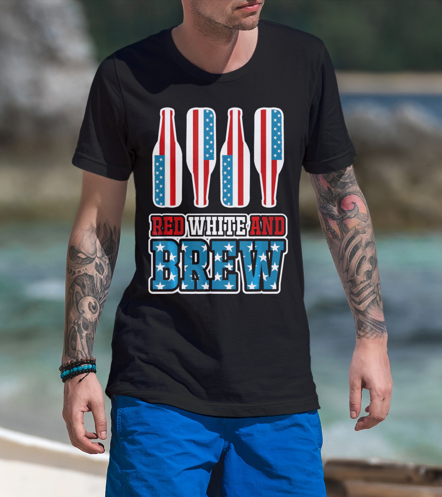 Red White And Brew American Flag Beer Bottles T-Shirt